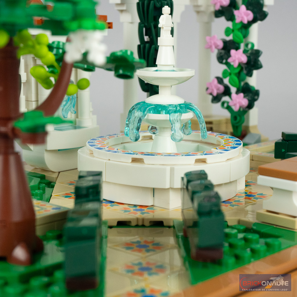 Direction les jardins du Maghreb ou du sud de la péninsule ibérique pour le set qui nous intéresse aujourd’hui : je vous propose de découvrir la référence LEGO Icons 10359 Fountain Garden – traduit en français par LEGO par Le jardin andalou.