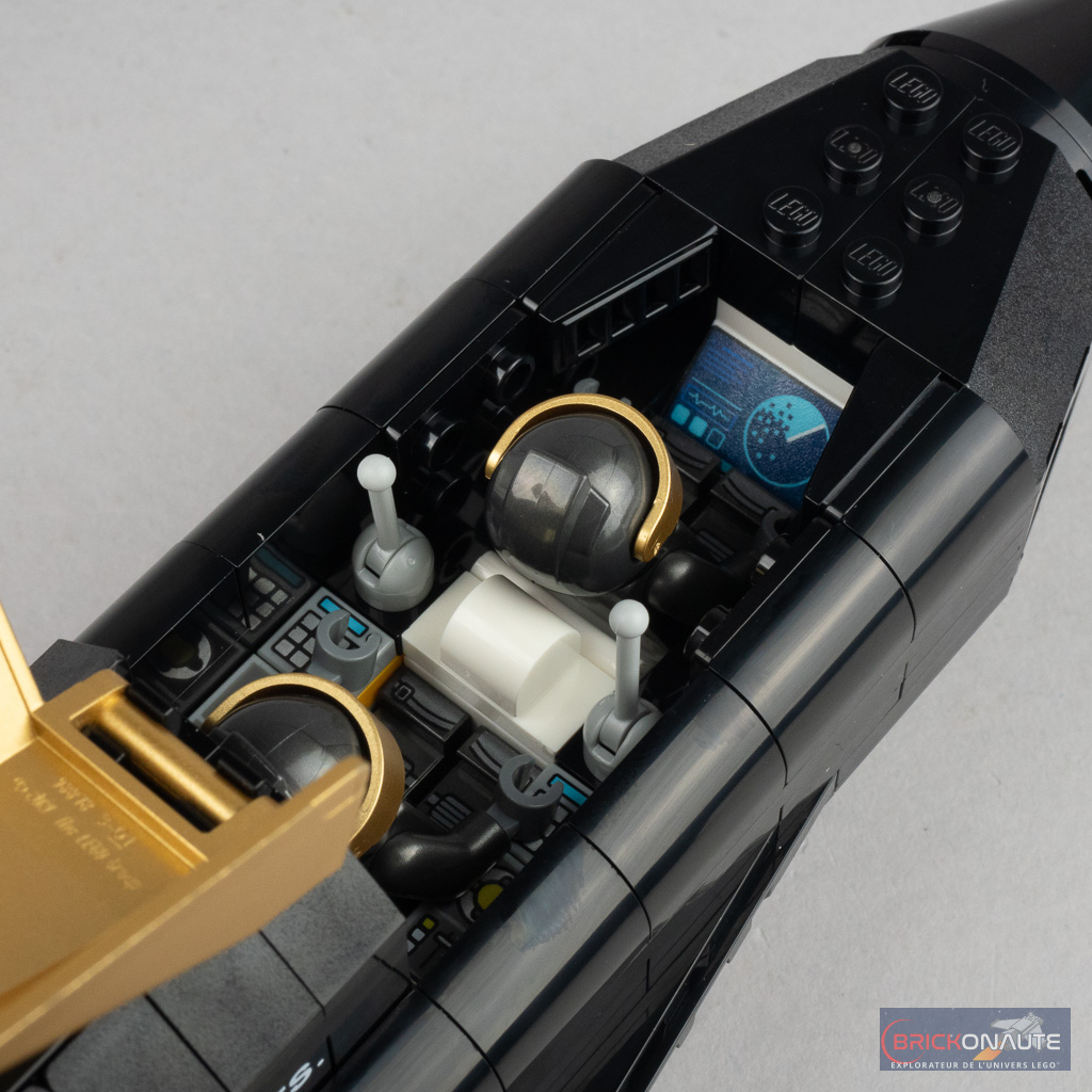 Exception faite de la base que j’aime beaucoup, le système permettant de donner un angle étant particulièrement bien pensé et robuste, et la finition étant très originale et réussie. Clairement, on préférera l’exposition de l’ensemble avec le vaisseau juché sur son support de luxe plutôt que de séparer les différents éléments. Je regrette d’ailleurs aussi qu’à part cette possibilité de détacher le vaisseau, ce set n’embarque absolument aucune fonctionnalité – à part la verrière dorée à ouvrir.