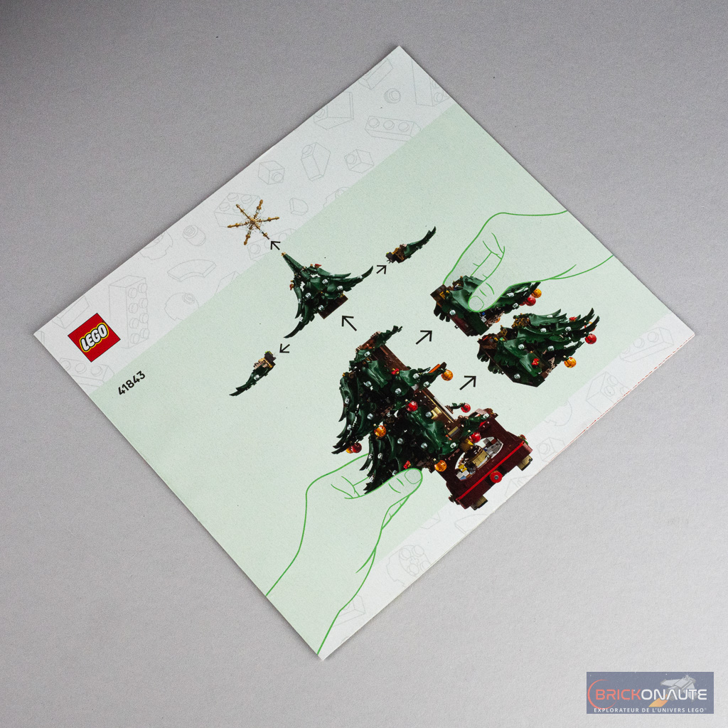 On trouve également 6 notices d’instructions, chacune couvrant l’assemblage de 3 à 5 sachets de pièces. Il s’agit à chaque fois de construire des « modules » avant de les attacher à la structure principale, on pourra donc facilement partager la construction en famille, c’est même l’un des arguments principaux de LEGO – la traduction française du nom du set étant… Sapin de Noël à construire en famille !