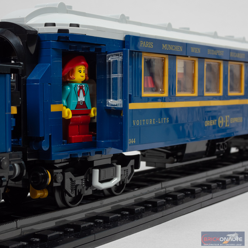 L’inventaire n’est pas spécialement riche avec « seulement » 2540 pièces pour un prix public de 300 €. On remarquera néanmoins de nombreux éléments intéressants dont quelques pièces tampographiées (avec les destinations et le logo Orient Express, ou les mentions « voiture-restaurant et voiture-lits), une grande variété de pièces dark blue dont certaines inédites dans cette couleur (dont les portes des voitures), de nouveaux éléments en forme de « T » inversé pour la fixation des fenêtres, ou encore une jolie collection de pièces dorées (dont les cadres de fenêtres inédits dans cette couleur) et des beams gris inédits.