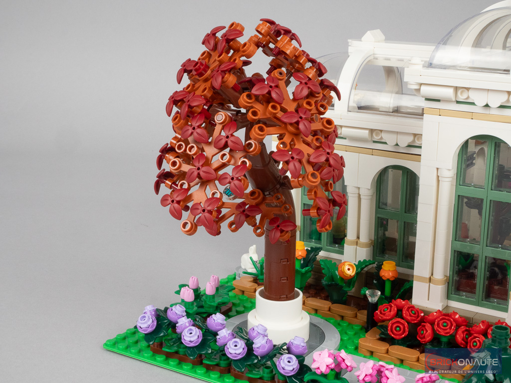 Notez cependant qu’il n’est pas possible d’intervertir l’eucalyptus et le palmier dattier, ce dernier étant trop grand pour venir loger son feuillage sous la partie basse de la verrière. Les réservations ne sont pas non plus compatibles avec les arbres de la référence LEGO Icons 10315 Tranquil Garden (mon test à cette adresse). Petite remarque au sujet de l’eucalyptus : j’ai remarqué un léger problème de solidité, il faudra se montrer prudent lors de l’assemblage et des manipulations.