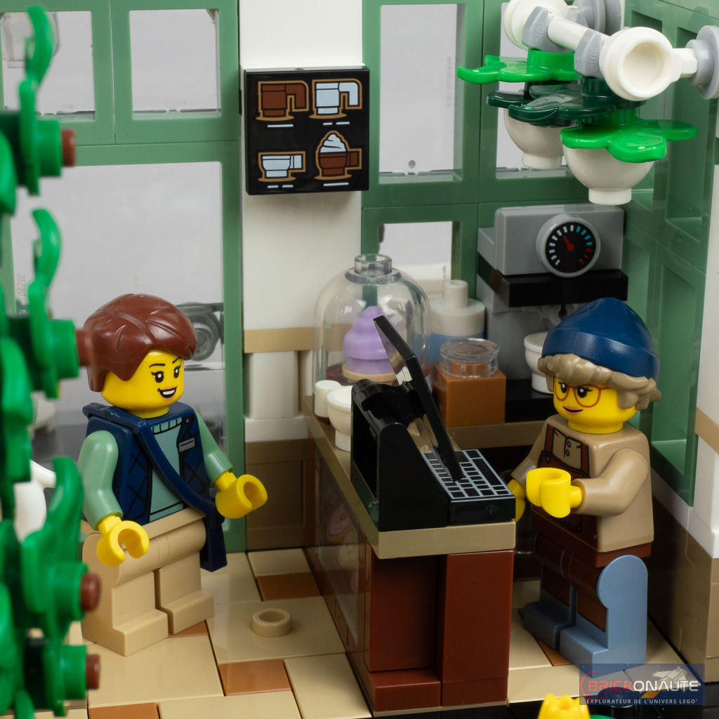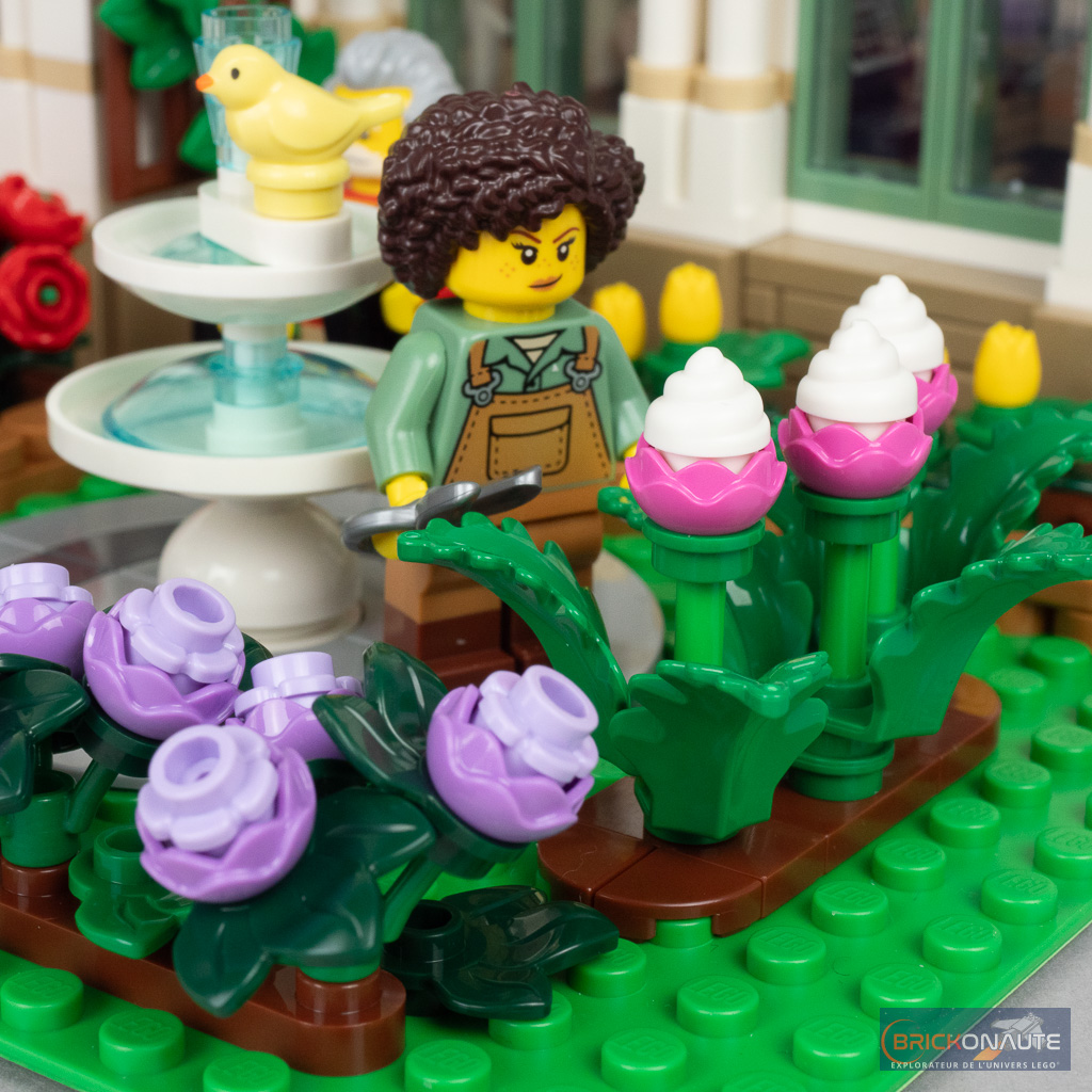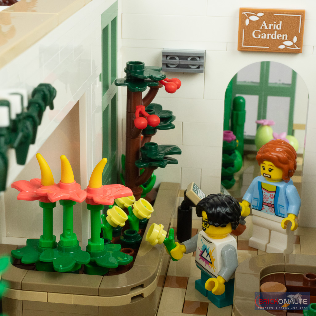 Toutes les minifigs ont leurs histoires à raconter et ont été conçues dans ce but. On retrouve la directrice du jardin botanique sous les traits de la fan designer Valentina Bima (avec un torse inédit) et deux employés, avec un torse inédit également. Il y a également une mère avec son jeune garçon (qui ose cueillir une fleur !), un couple de personnes âgées (avec leur chien), un grand-père avec sa petite fille et une barista. Le dernier personnage, avec sa barbe et son béret, n’est autre que le designer du set Chris McVeigh.
