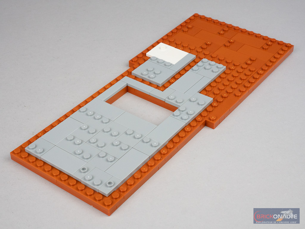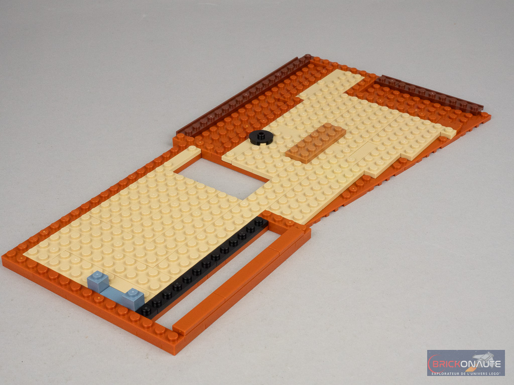 C’est sans doute le premier étage qui est le plus intéressant à construire avec sa forme particulière. Là encore, c’est un système de charnières qui permet de trouver l’angle adéquat, les espaces intermédiaires étant comblés avec des cheese slopes. Deux petits balcons sont accessibles par des portes dédiées.