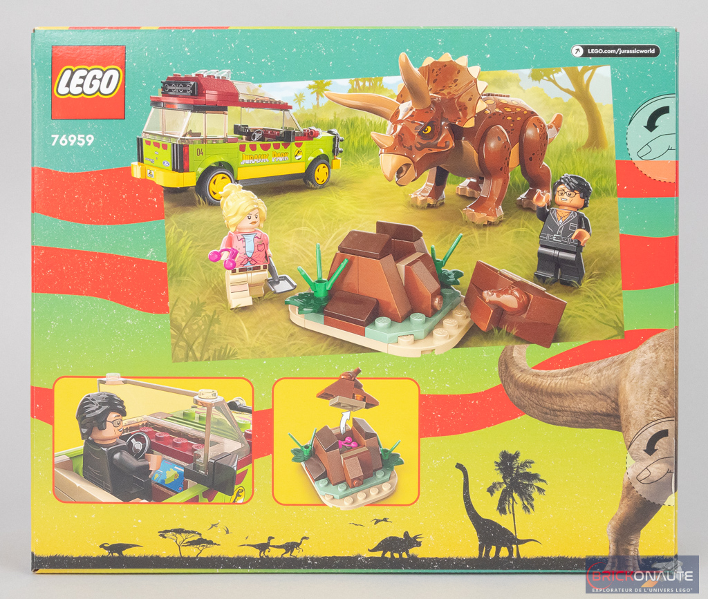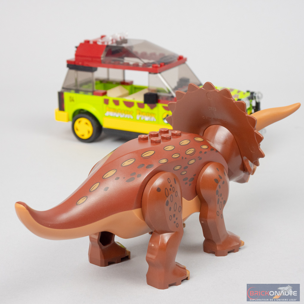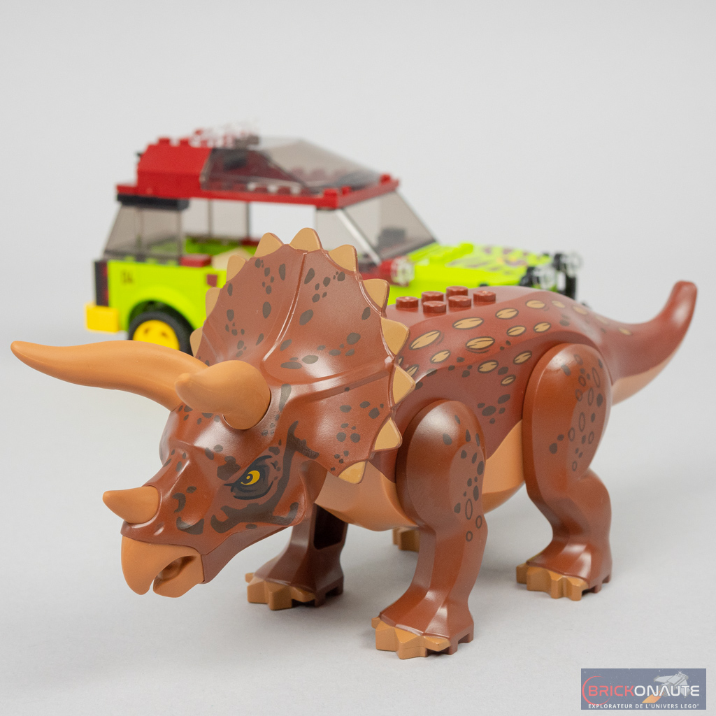 Je le disais dans le chapitre dédié, je m’interroge sur la sélection de minifigs avec l’absence d’Alan Grant qui avait toute sa place aux côtés d’Ellie Sattler et Ian Malcolm dans cette boîte. Deux personnages qui restent bien réalisés malgré les quelques défauts que j’ai pu mentionner. Le tricératops, star de cette boîte, est peut-être un peu « simple » même si c’est très propre dans la réalisation.