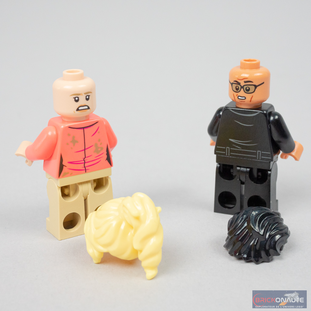 Le visage d’Ellie Sattler est plutôt commun mais sa coiffure couleur cool yellow l’est moints : on ne la retrouve que dans la référence LEGO Disney 43207 Ariel’s Underwater Palace pour les cheveux d’Arista. La tête de Ian Malcolm est en revanche inédite.