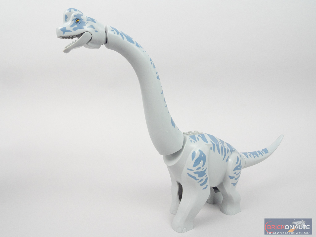 La star du set, c’est évidemment ce très joli brachiosaure – évidemment exclusif à cette référence. Il signe le retour de ce dinosaure imposant après 22 ans d’absence – il était sorti en 2001 dans la gamme LEGO Dinosaurs avec le set 6719 Brachiosaurus. La finition est à la hauteur des espérances avec une peau grise couverte de rayures sand blue. Et il est plutôt imposant : 24cm de haut !