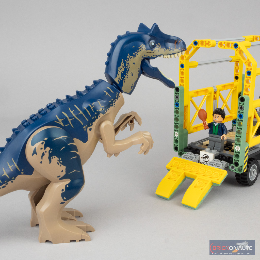 La star du set, c’est bien évidemment l’allosaure – une espèce de dinosaure jamais vue jusqu’ici chez LEGO. Même si pour le coup, elle n’est pas vraiment nouvelle : LEGO réutilise en effet le corps et les pattes de l’Indominus rex et du T. rex, et la mâchoire du baryonyx. En fait, seule la tête est un nouvel élément.
