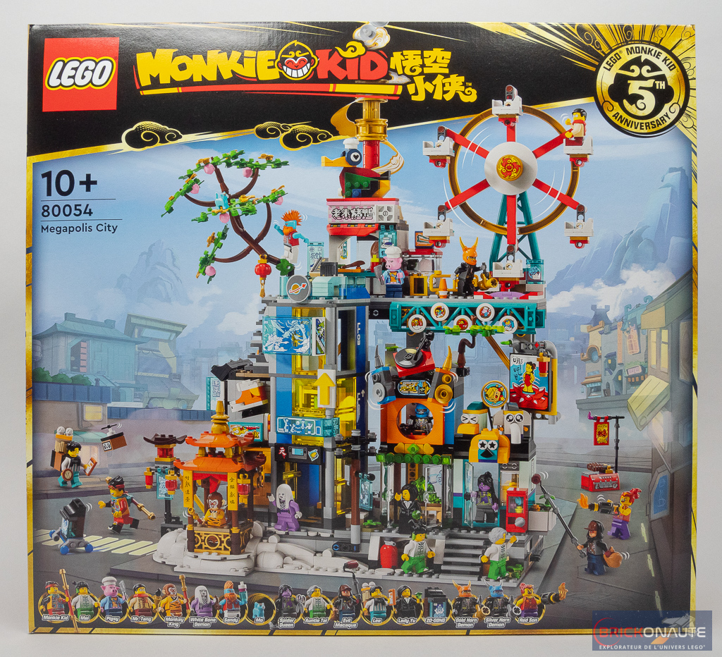 On attaque cette série de tests des nouveautés LEGO attendues pour le 1er janvier 2024 avec une jolie boîte attendue dans la gamme LEGO Monkie Kid, la référence 80054 Megapolis City 5th Anniversary. Présentée en 2020, cette gamme est la première du fabricant à être inspirée par la célèbre légende chinoise du Roi Singe Sūn Wù Kōng. Selon le système chinois, il s’agira bien en 2024 du 5ème anniversaire : pour faire simple, les bébés qui naissent ont déjà 1 an.