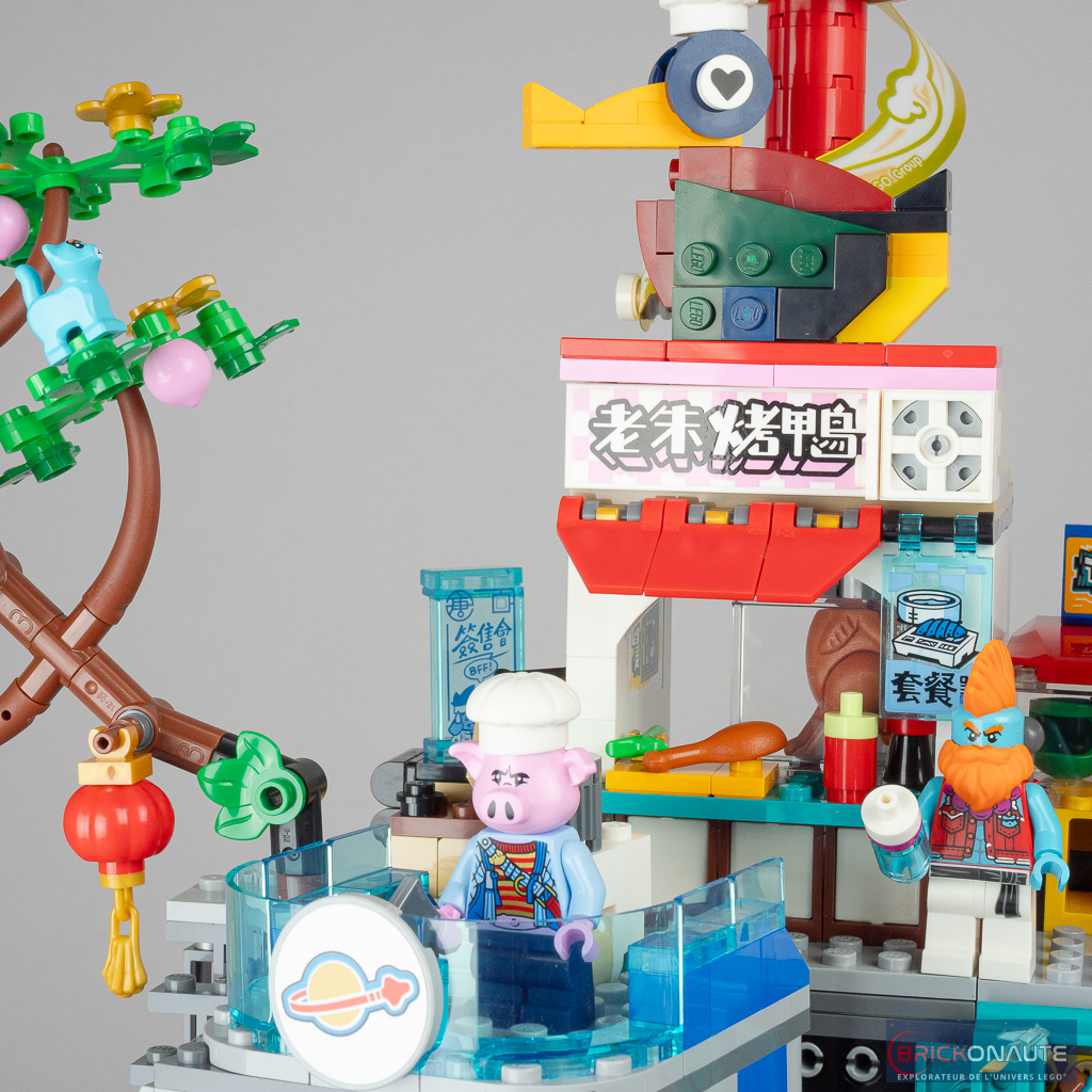 Autre point fort, cette conception permettra de combiner ce set avec d’autres boîtes LEGO Monkie Kid pour créer une ville de plus grande ampleur. Plus précisément avec les références 80036 The City of Lanterns (2187 pièces – 139,99 €) et 80044 Monkie Kid’s Team Hideout (1582 pièces – 99,99 €) – ça demandera un sacré budget, mais la construction sera alors particulièrement impressionnante.