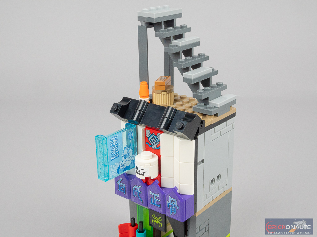 Ce qui fait que tout ceci manque un peu de cohérence, même si c’est ici une volonté délibérée des designers. Cette conception leur permet d’intégrer un maximum de références, sans trop se poser de questions, à l’univers LEGO Monkie Kid (et à LEGO en général) pour ce set qui en célèbre le 5ème anniversaire.