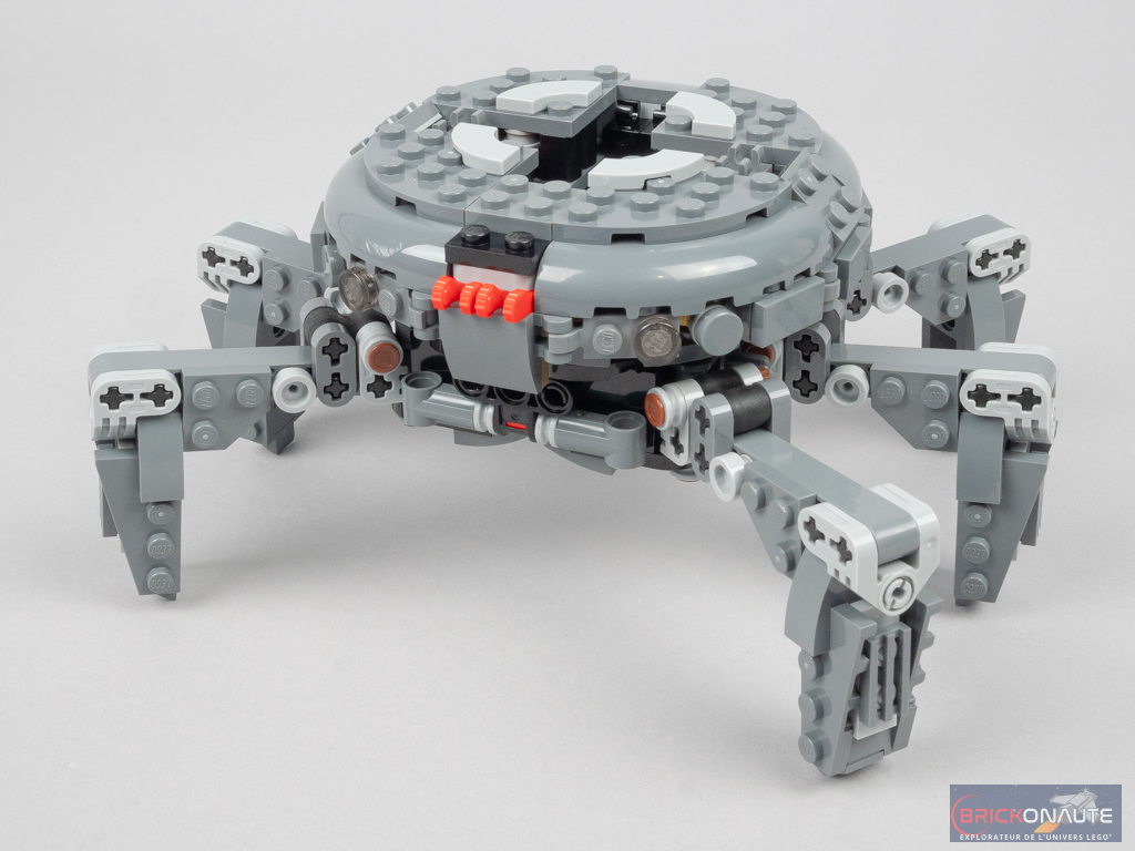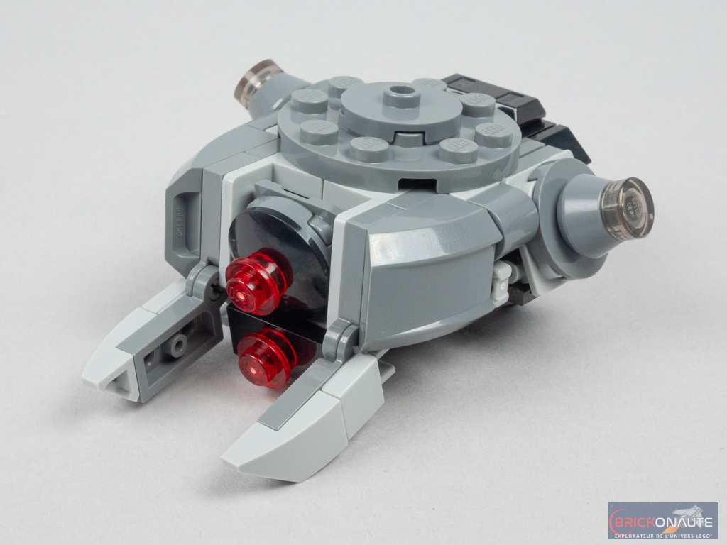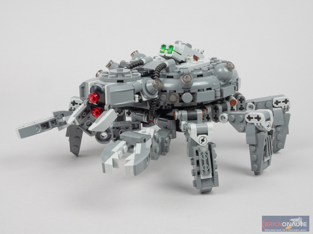 L’engin est intéressant, ne serait-ce parce qu’il change de ce que LEGO nous propose d’habitude dans cette gamme. Avec ses 6 pattes, ce robot-araignée est original et le niveau de finition me semble tout à fait correct avec tout un tas de petits détails un peu partout. J’avoue ne pas avoir vu la dernière saison du Mandalorian mais d’après les quelques images que j’ai pu trouver sur le net, l’interprétation proposée par LEGO me paraît convaincante.