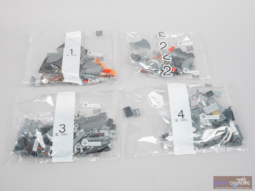 À l’intérieur, on trouve 4 sachets de pièces numérotés de 1 à 4, et une petite notice d’instructions de 132 pages. Pas de stickers à l’horizon, et juste après avoir fini la construction du set LEGO Technic 42160 Audi RS Q e-tron je peux vous dire que c’est appréciable 😅.
