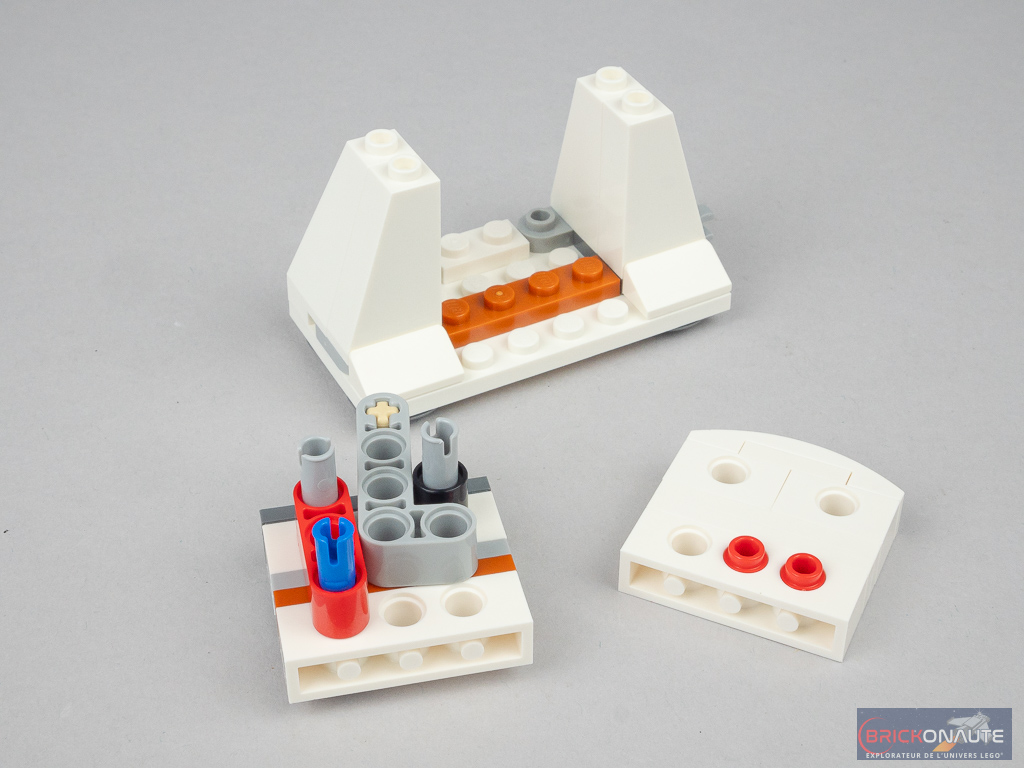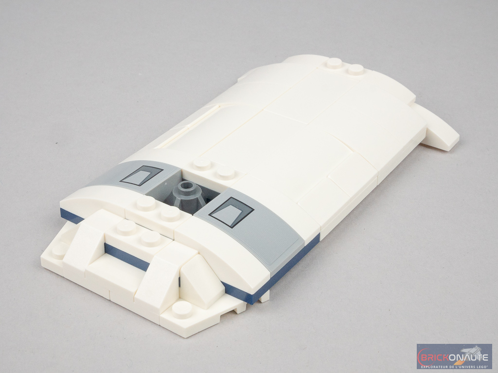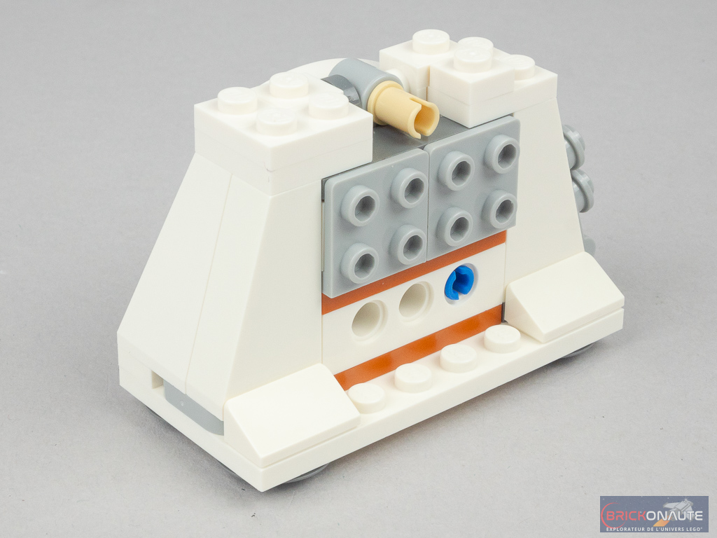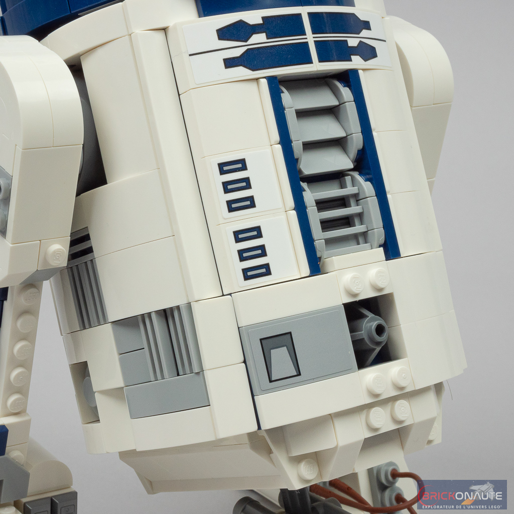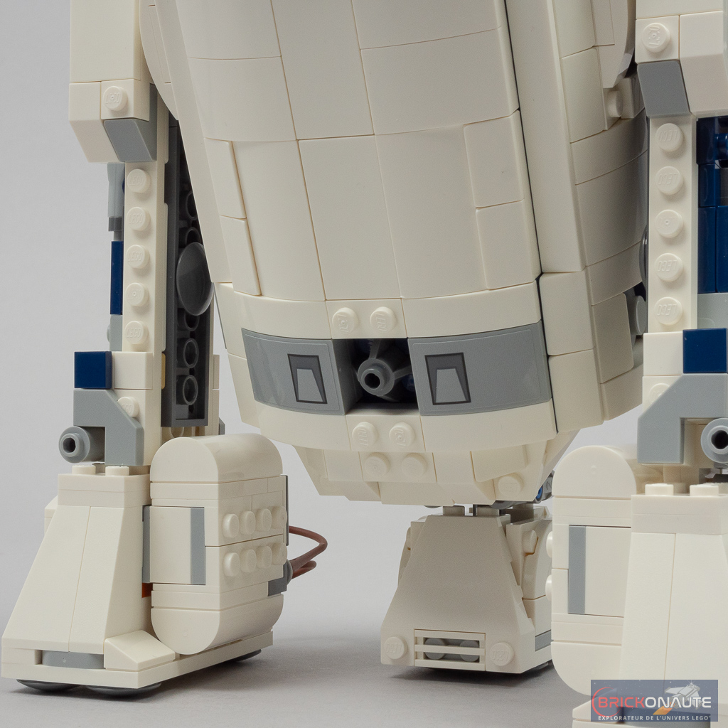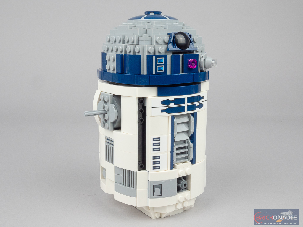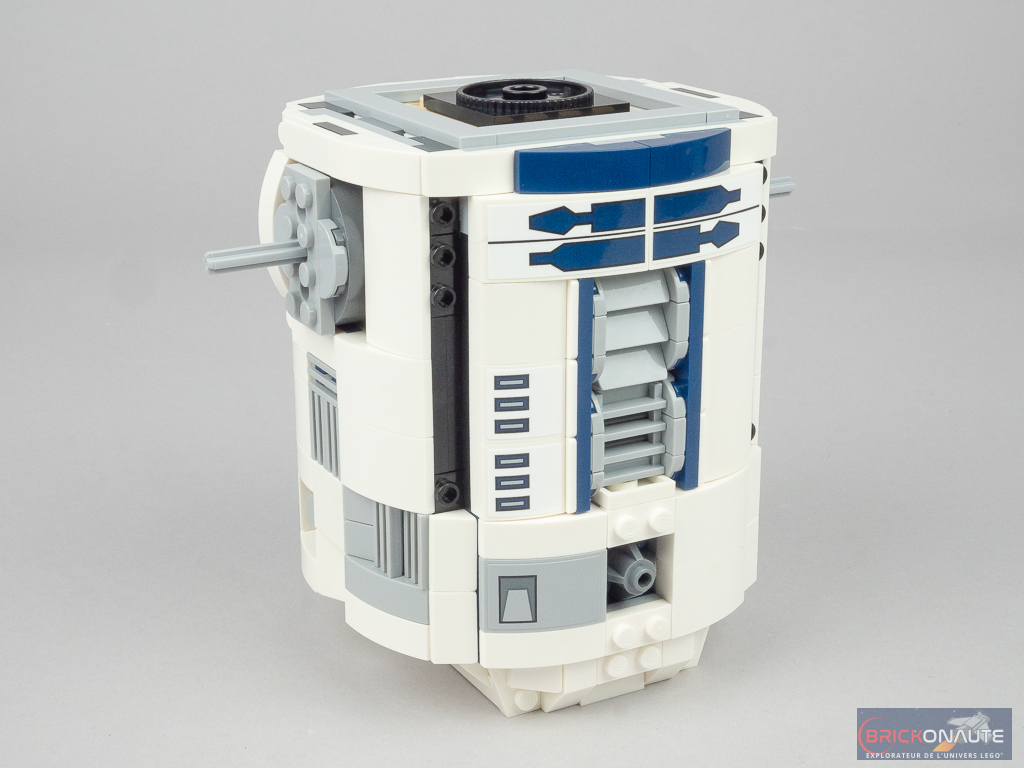 Avec ses 24cm, il n’est finalement pas beaucoup plus petit que son grand frère mais malgré tout, cette réduction de taille (et d’inventaire) a nécessité quelques raccourcis esthétiques dont l’utilisation d’autocollants mais rien de rédhibitoire : le design de l’ensemble me paraît plus que convaincant et rend plutôt un bel hommage au droïde astromech. On regrettera comme toujours les autocollants un peu trop blancs sur des éléments LEGO qui le sont un peu moins.