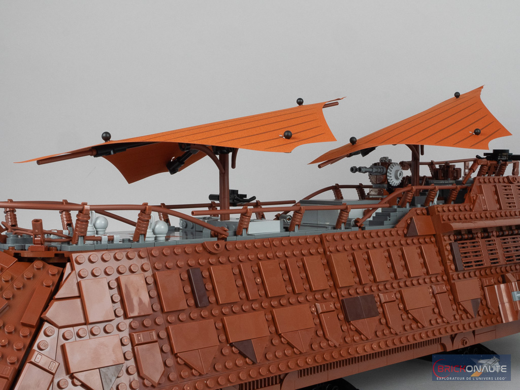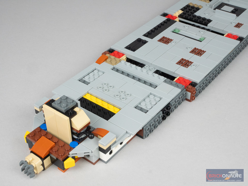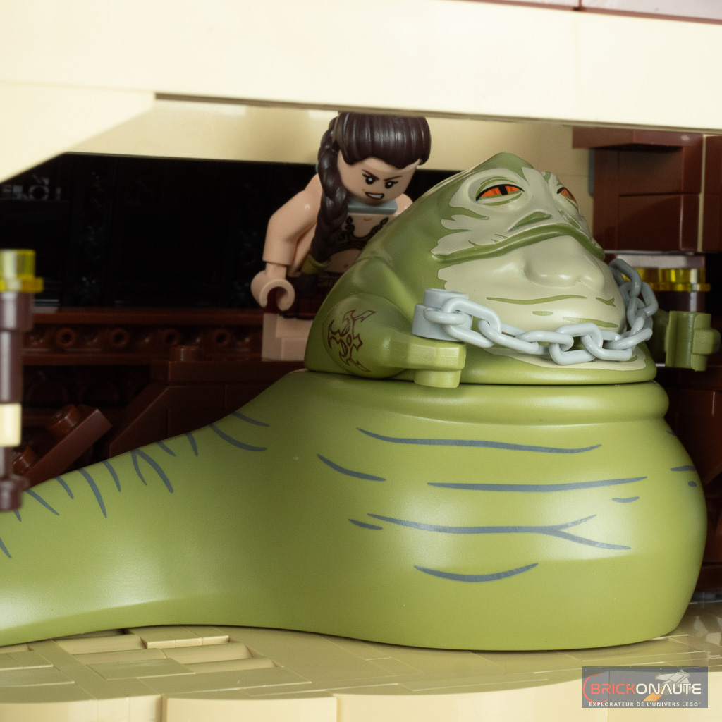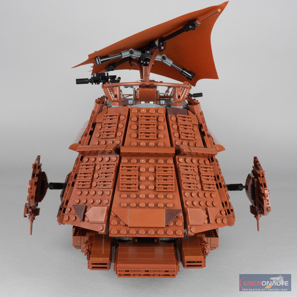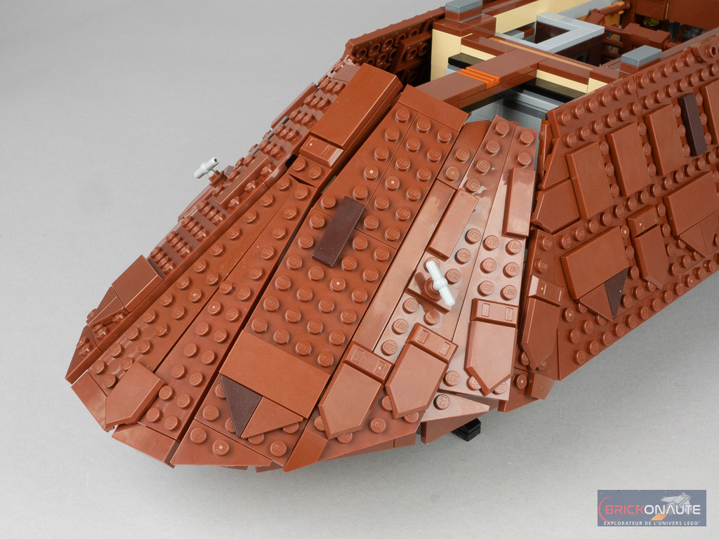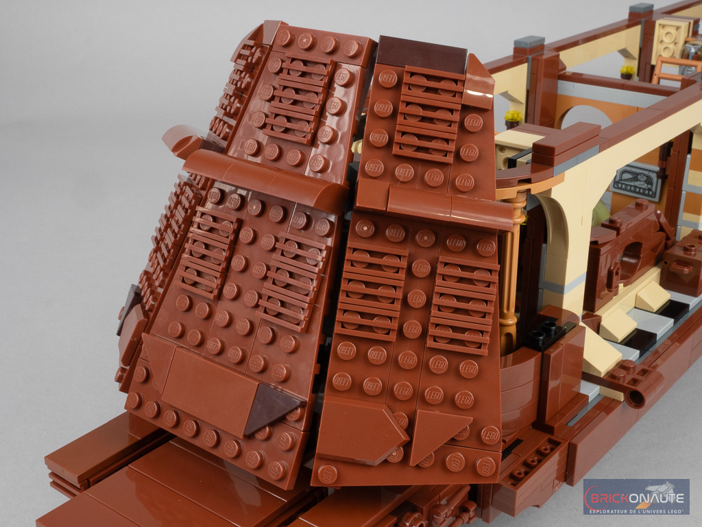 Les trappes / fenêtres à l’arrière s’ouvrent réellement et LEGO a prévu un petit promontoire avec deux tenons pour y fixer la minifig de Leia pour qu’elle puisse assister au casse-croûte du Sarlacc. À part quelques petits éléments mobiles, le set ne propose pas de réelle « fonctionnalité » – rien de dérangeant, ce n’est à mon avis pas l’objet de ces sets dédiés à un public adulte.