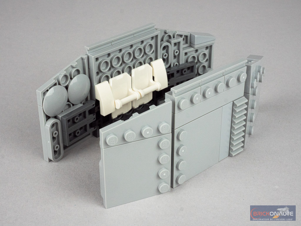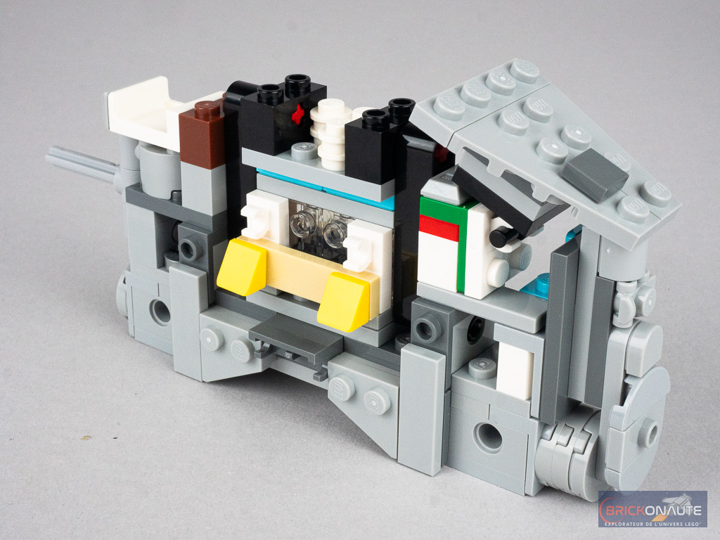 L’expérience de construction s’articule en 4 grandes phases et commence logiquement par le « corps » de la machine qui intègre quelques easter eggs comme ces versions minimalistes de snowtroopers. Les deux parois latérales sont constituées de 3 éléments articulés sur des clips, la partie centrale étant clipsée au corps et le tout trouvant plutôt bien les angles souhaités.
