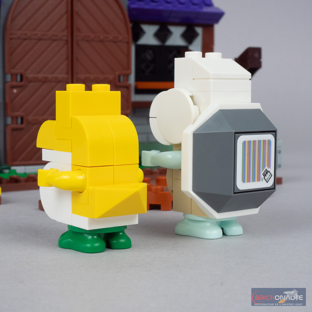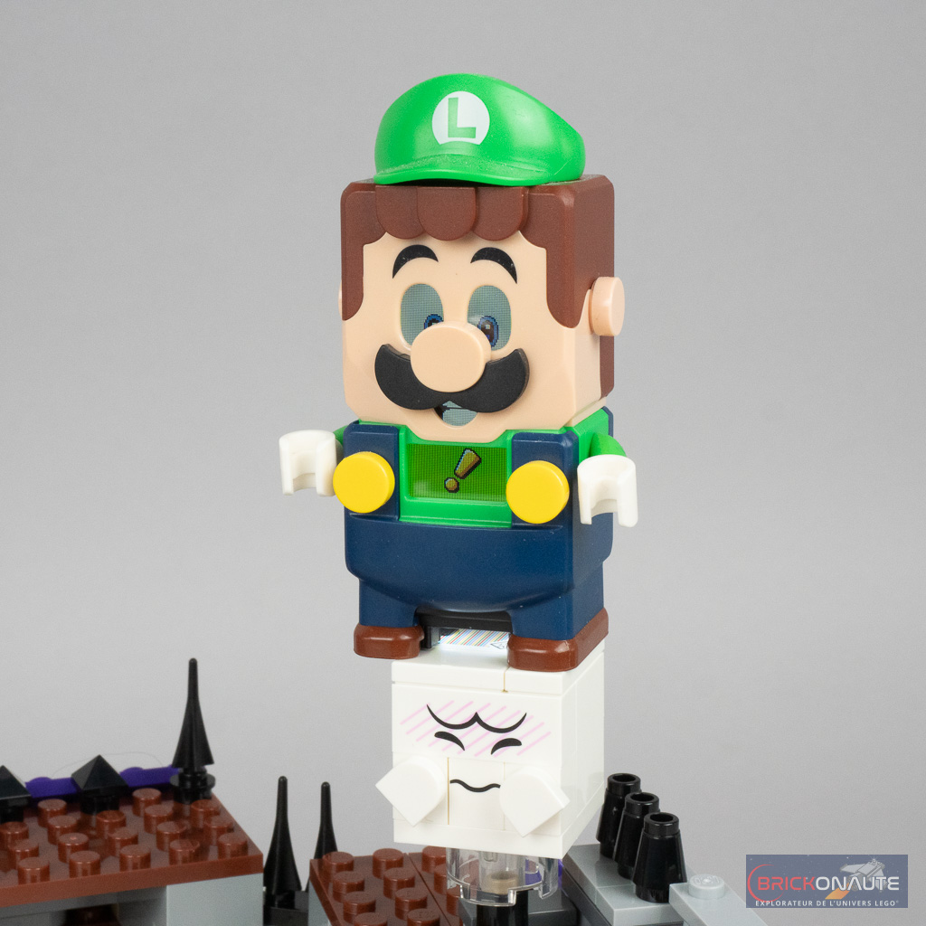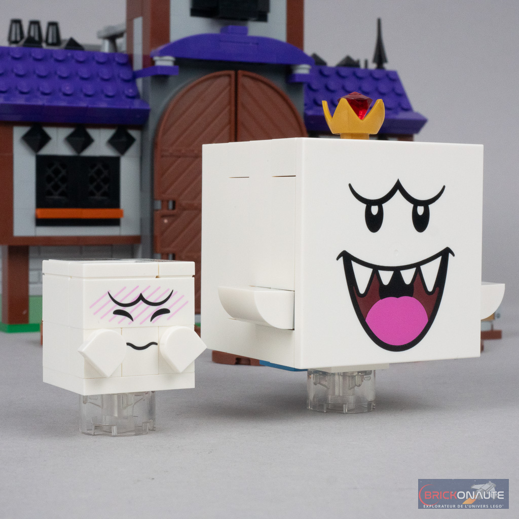 On retrouve aussi le roi Boo (King Boo) – après tout il s’agit de son manoir hanté – pour une troisième fois dans la gamme… et dans une troisième version après celle des sets 71401 Luigi’s Mansion Haunt-and-Seek (2022) et 71377 King Boo and the Haunted Yard (2020). Placé sur un support basculant dans le manoir, il faut le faire tomber pour dévoiler le code-barres situé au-dessous. En le scannant plusieurs fois, on obtient 12 pièces.