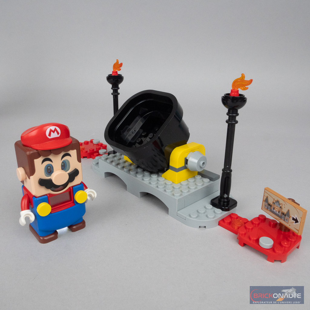 Le dernier élément notable est le canon de départ : cette grosse boîte dispose donc d’un départ spécifique pour un « combat de boss » qui déclenche un décompte de 90 secondes pour venir à bout du niveau. Mais malheureusement, le set n’intègre pas le drapeau d’arrivée, à retrouver dans l’un des différents « starter packs » de la gamme LEGO Super Mario contenant l’une des figurines interactives de Mario, Luigi ou Peach.