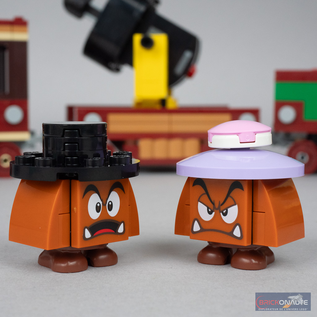 On y trouve les inévitables Goombas, qui héritent d’un petit twist intéressant avec de jolis chapeaux pour les installer à l’intérieur du wagon restaurant. LEGO a prévu la fourniture de deux tiles neutres si vous souhaitez leur rendre leur apparence d’origine. Les deux visages, différents, ne sont cependant pas exclusifs et c’est uniquement leurs chapeaux qui les rendent exclusifs à cette boîte.