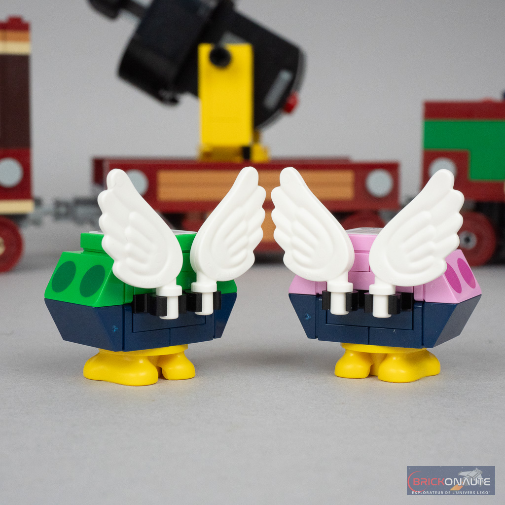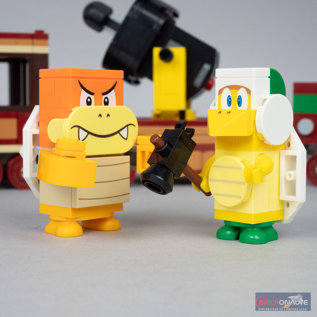 Enfin, du côté des Koopas on trouve un Frère Marto (Hammer Bro) et Boum Boum (Boom Boom). Le premier a déjà été vu dans la gamme, lui aussi dans une série de personnages à collectionner (la série 5 – réf. 71410). Boum Boum es apparu pour sa part dans le pack de démarrage 71387 Adventures with Luigi, sorti en 2021.