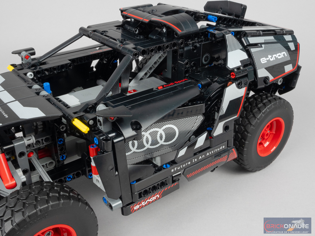 La construction est globalement intéressante, à commencer par la partie « technique » – plutôt simple mais efficace – qui permettra aux plus jeunes de découvrir quelques concepts pour la direction, les différentiels ou la suspension, par exemple. La partie « esthétique » est également bien fichue avec des connexions « exotiques » permettant d’obtenir les angles désirés. L’application des autocollants – 47 au total – est en revanche une vraie gageure, surtout qu’il faudra veiller à bien les aligner pour un rendu optimal, notamment sur le capot.