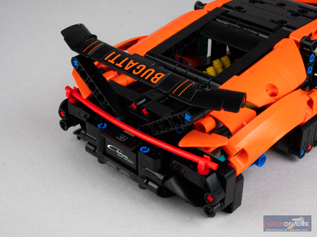 Pour tout vous dire, c’est la première fois que je construis un set LEGO Technic à cette échelle – et j’avoue avoir été très agréablement surpris du rendu final. Malgré un inventaire relativement « réduit », en rapport aux plus grosses boîtes de cette gamme, le designer est parvenu à capturer de manière convaincante les lignes et courbes si particulières de la Bugatti Chiron – l’utilisation de tiges pour souligner les contours de portières et de la calandre si particuliers n’y étant pas pour rien !