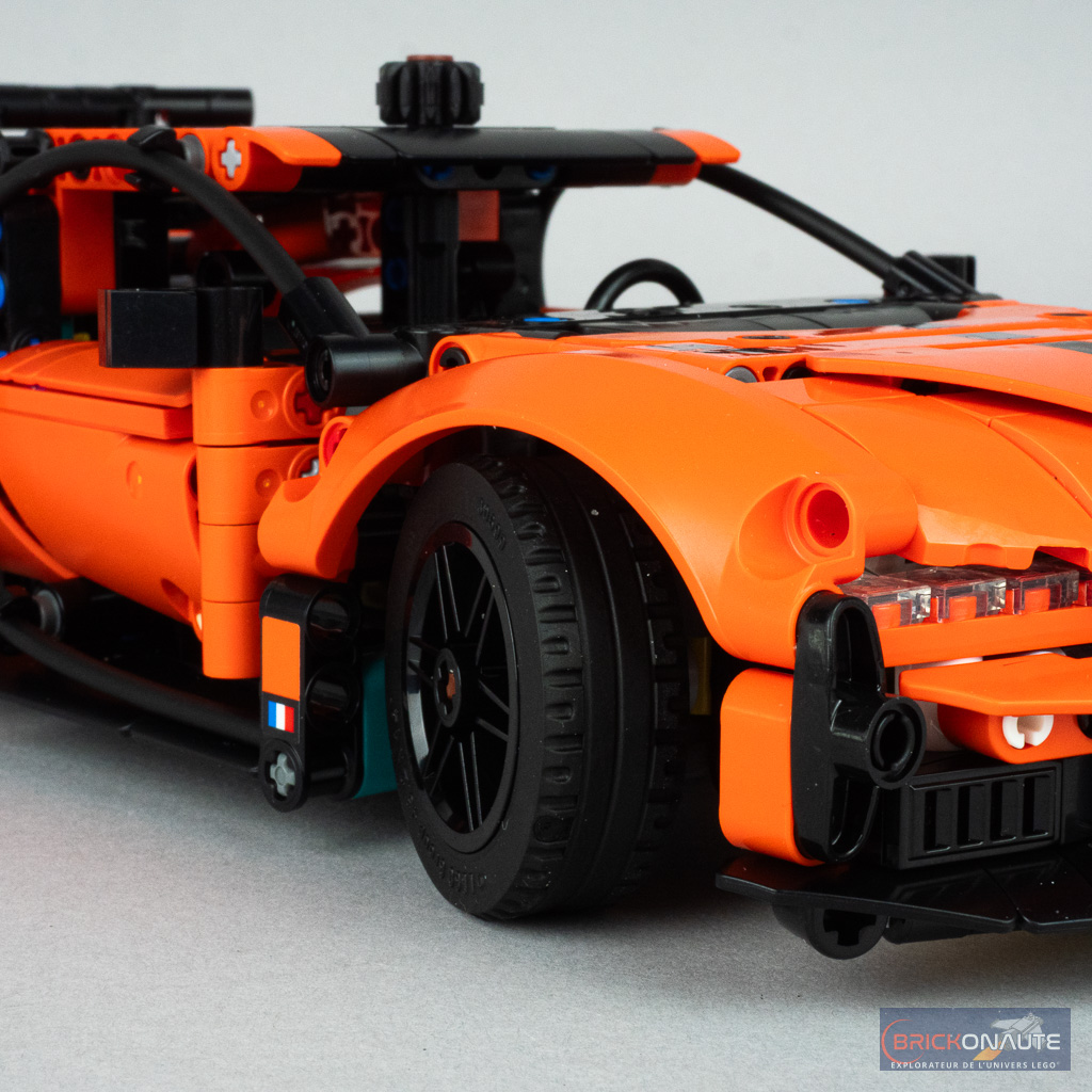 J’aime bien ce format de voiture Technic, j’en ai déjà quelques unes (et même testés 😉 ). Les nouveaux éléments pour le moteur sont intéressants, ce W16 est bien compact. Le design est souvent le plus mitigé selon la forme de la voiture réelle, ici c’est plutôt convaincant.