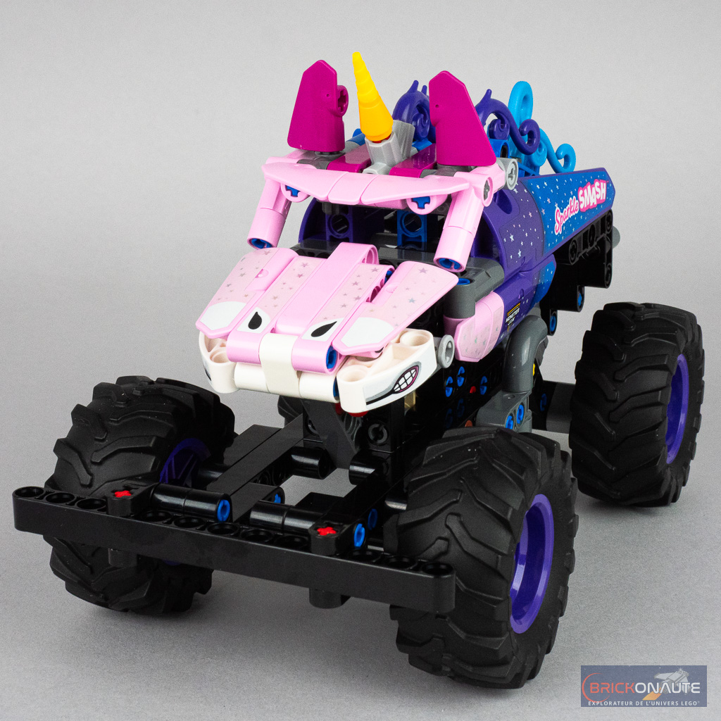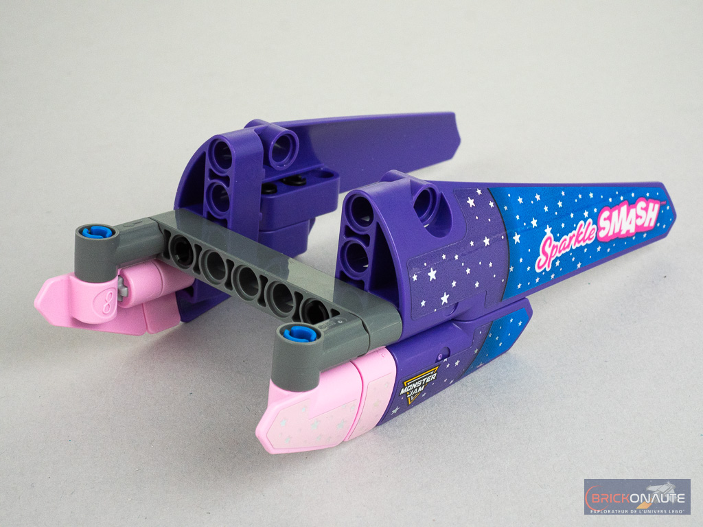 Au-delà de leurs formes spécifiques, chacun des modèles reprend les petits détails caractéristiques des engins originaux avec par exemple les petits feux rouges pour le Grave Digger et la tête de licorne pour le Sparkle Smash. Le choix de couleurs est également cohérent avec les modèles de référence même si le dégradé du rose vers le bleu est forcément un peu compliqué à réaliser en éléments LEGO. La version bicolore Fire and Ice du Grave Digger est très réussie – même les jantes sont de couleurs différentes.
