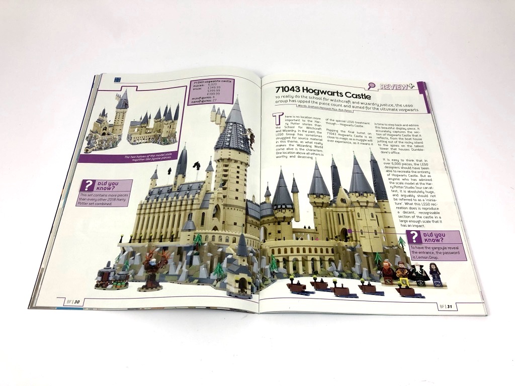 - « Review + » propose des tests concernant les dernières références LEGO, agrémentés d’une belle mise en page et d’une belle photographie, et dans lesquels on trouve des éléments supplémentaires comme l’interview de Justin Ramsden, designer du set 71043 – Hogwarts Castle