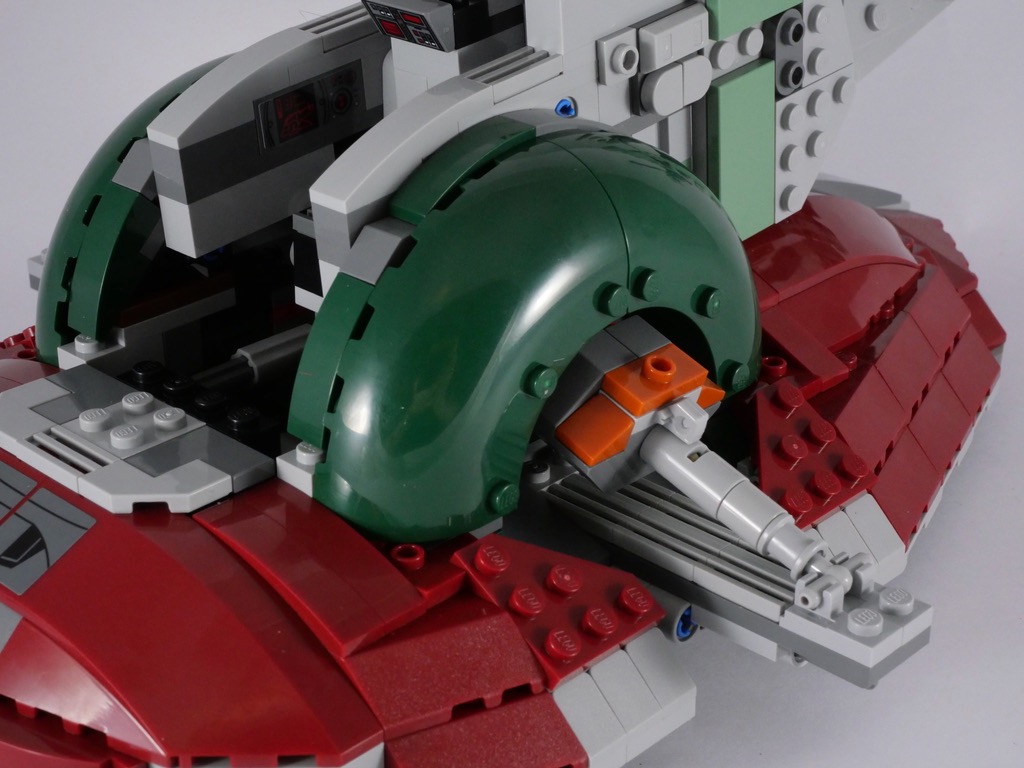 Bien que plus simple dans sa conception que son grand frère, l’UCS 75060 – Slave I (qui compte presque le double de pièces, 1996 pour être précis), cette version reste très satisfaisante sur le plan esthétique. On retrouve tous les éléments caractéristiques du vaisseau de Boba Fett : les ailes mobiles et leurs renforts, les « demi-donuts » de part et d’autre de la cabine, les canons à la base du vaisseau ou encore la verrière et sa forme particulière. L’usage des autocollants est relativement réduit (seulement 10 stickers sont à appliquer), ce qui est également très appréciable. Evidemment, le niveau de détail n’atteint pas celui d’un UCS et ça se comprend, ce n’est pas le même prix, et surtout pas le même public visé. Mais cela reste vraiment très satisfaisant.