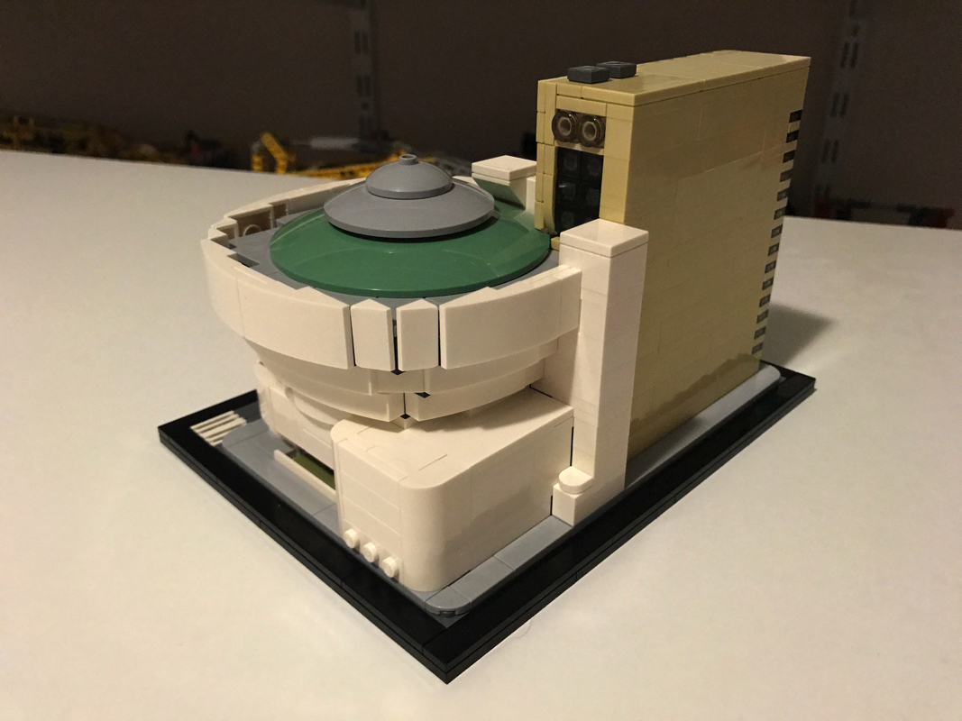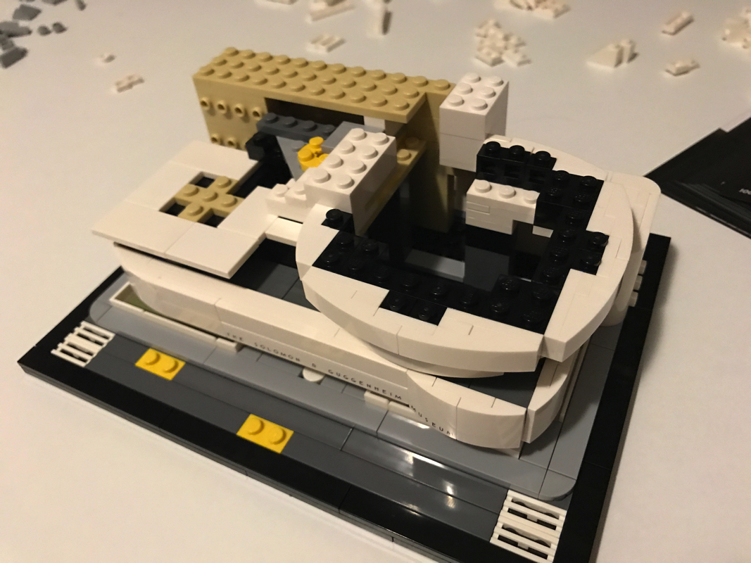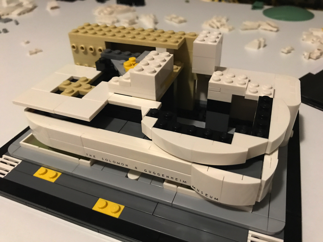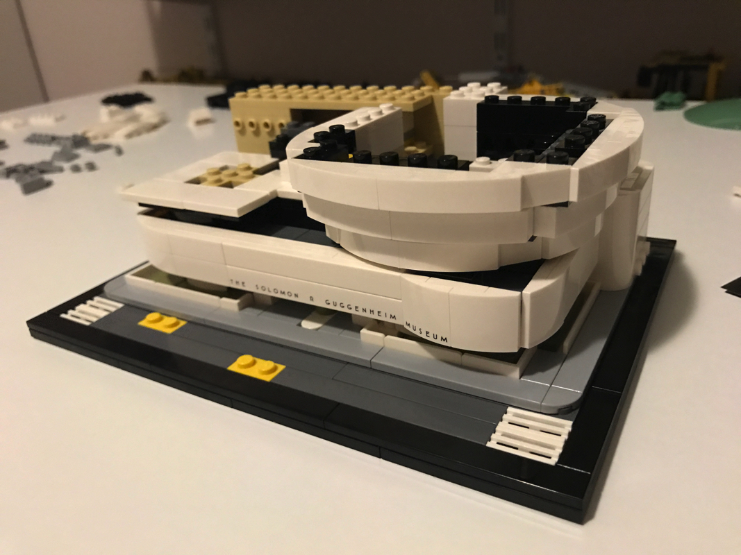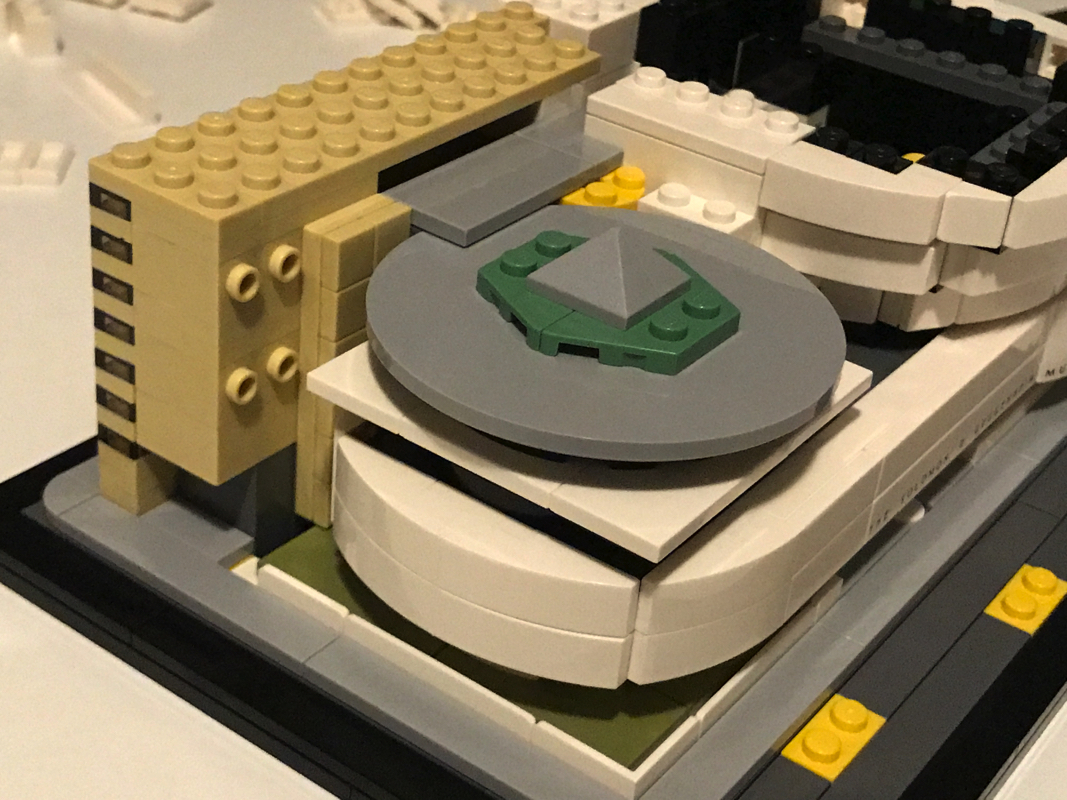 Le musée Solomon R. Guggenheim ou Solomon R. Guggenheim Museum est un musée d’art moderne situé sur la Cinquième avenue dans l’Upper East Side à New York, aux États-Unis. C’est le plus connu des différents musées créés par la fondation Solomon R. Guggenheim. Aussi il est souvent appelé simplement le Guggenheim. Il compte en 2005 environ 6 000 œuvres dont 3 % seulement sont exposées. Il a été dessiné par l’architecte de renom Franck Lloyd Wright, qui a eu droit à d’autres sets Lego (21005 – Fallingwater, 21010 – Robie House et 21017 – Imperial Hotel, aucun de ces trois sets n’est encore commercialisé par Lego aujourd’hui).