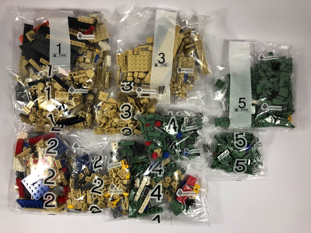 Une fois n’est pas coutume, le prix demandé par LEGO reste raisonnable : 109,99€ pour 1685 pièces. On pourra aisément la trouver à des prix moindres chez d’autres revendeurs comme Amazon (79,95 € à l’heure où j’écris ces lignes, soit 27% d’économies). Et, ce qui ne gâche rien, l’inventaire est truffé de pièces rares ou uniques et notamment en sand green.