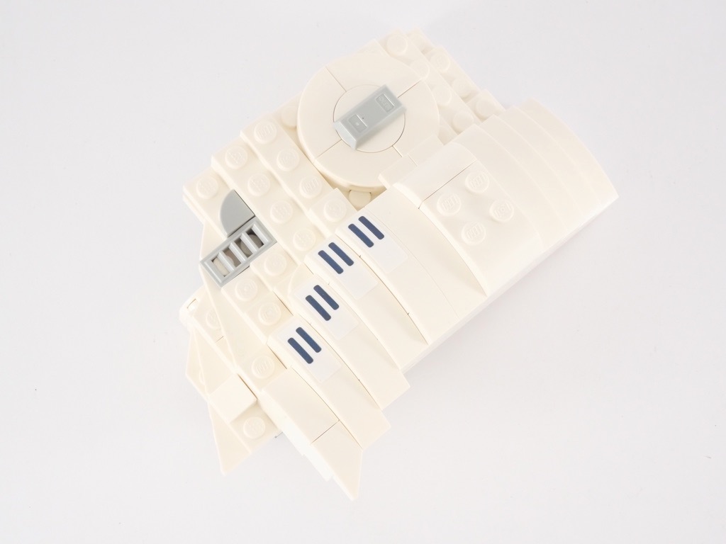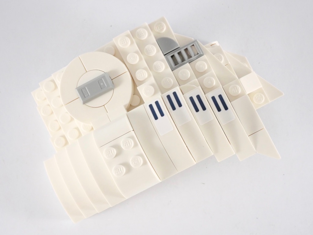 Evacuons le sujet tout de suite. Dans un set qui se veut collector et destiné à être exposé sur un bureau ou ailleurs, les autocollants n’ont rien à faire. Pour plusieurs raisons. La première, leur différence de couleur avec les pièces qu’ils recouvrent. Si le blanc des pièces LEGO est un peu « cassé », celui des autocollants ne l’est pas. Et le résultat est loin d’être satisfaisant. L’autre raison, c’est que l’on sait que ces autocollants ont tendance à mal vieillir, et à se décoller avec le temps. Voilà, c’était mon petit « coup de gueule » 😉