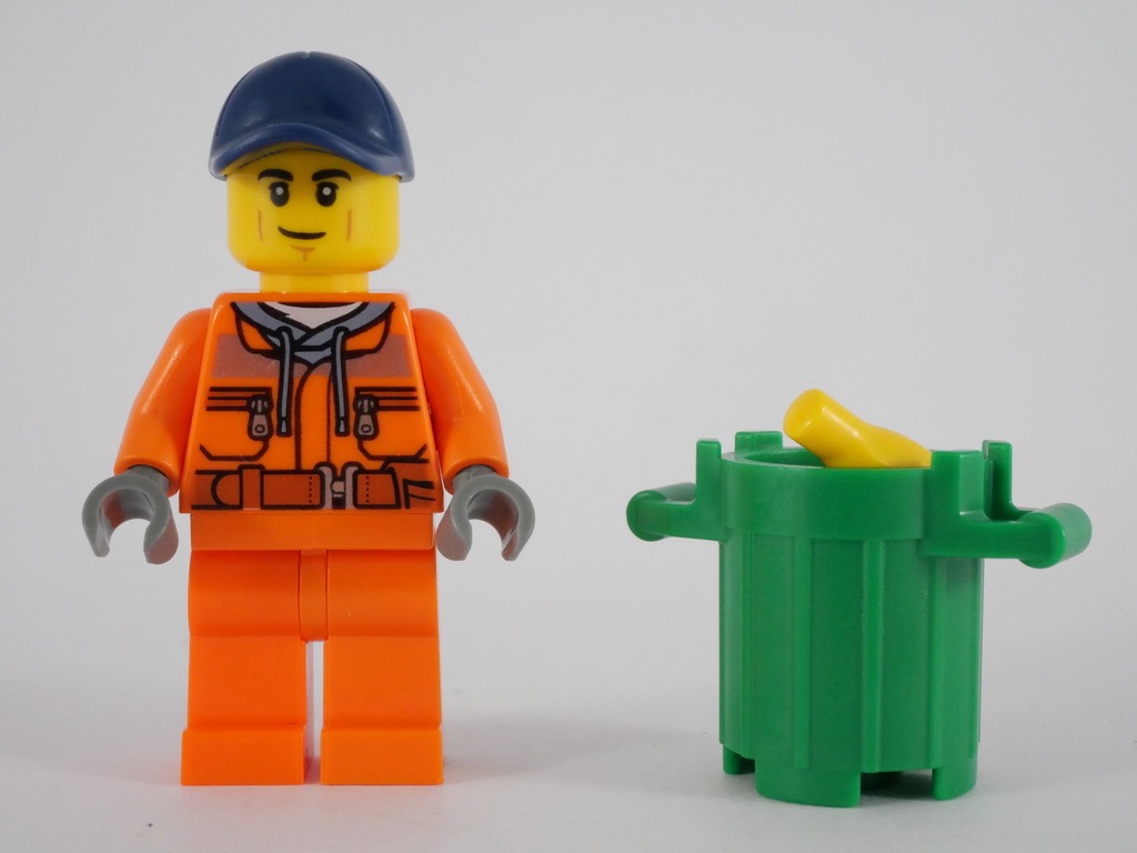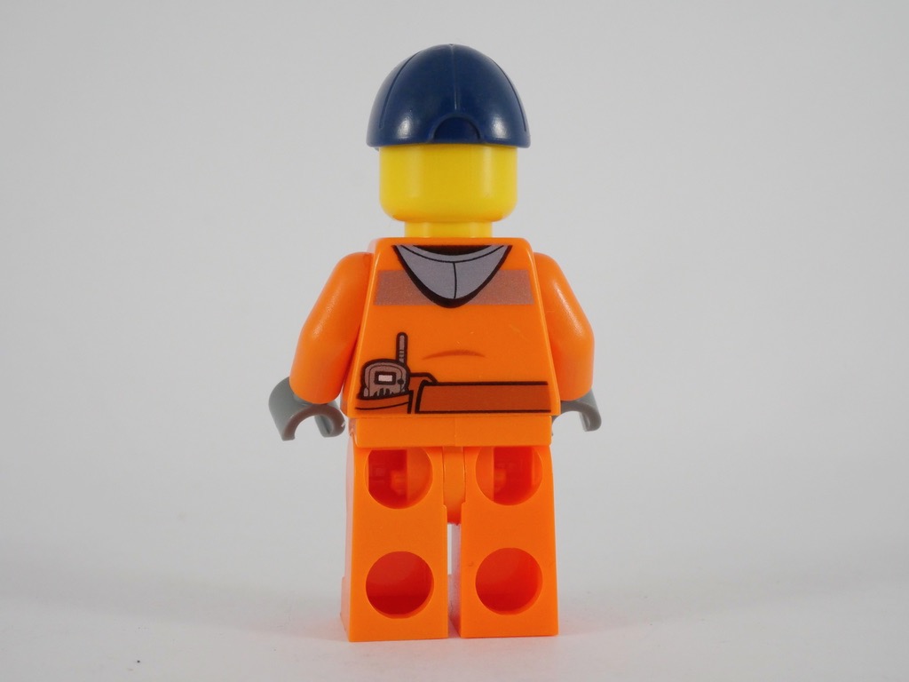 La minifig n’est pas spécialement rare : on retrouve ce même torse orange dans de nombreuses autres boîtes, qu’il s’agisse de chantiers, de stations services, de gares… Mais il n’empêche que ce torse est bien réalisé avec la capuche, les poches à zip, la ceinture ou encore un talkie-walkie dans le dos.