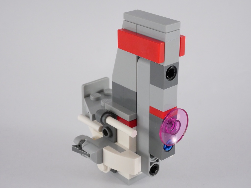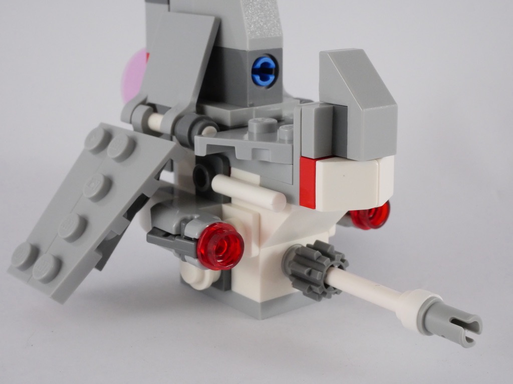 Le T-16 Skyhopper est instantanément reconnaissable par sa forme, plutôt intelligemment capturée ici par le designer. Une concession a été faite pour pouvoir accueillir le pilote, induisant une forme assez étrange du cockpit. Les deux stud shooters proéminents sont également un peu gros. Mais il fallait tout de même bien armer ce vaisseau, et c’était sans doute la meilleure solution.