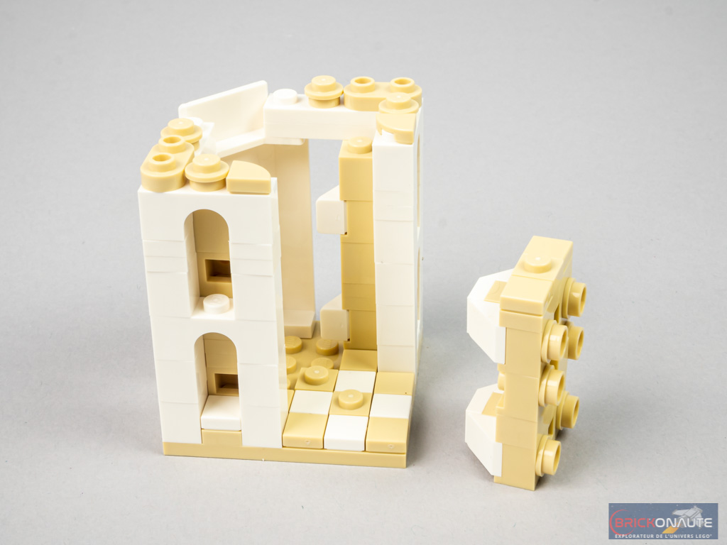 Au-delà de ça, la réalisation est de très bonne facture. L’intégration des détails est tout bonnement impressionnante pour un modèle à cette échelle. J’ai surtout apprécié la manière d’intégrer les portes dans les iwans – utilisant intelligemment la partie arrière des angular brick ().