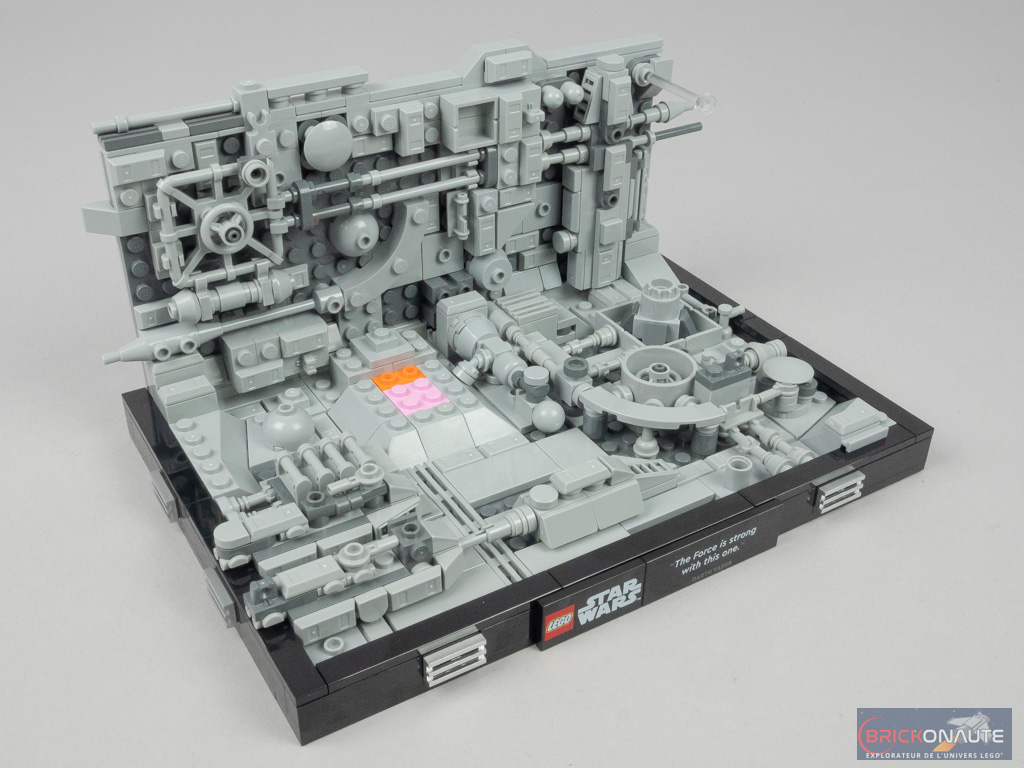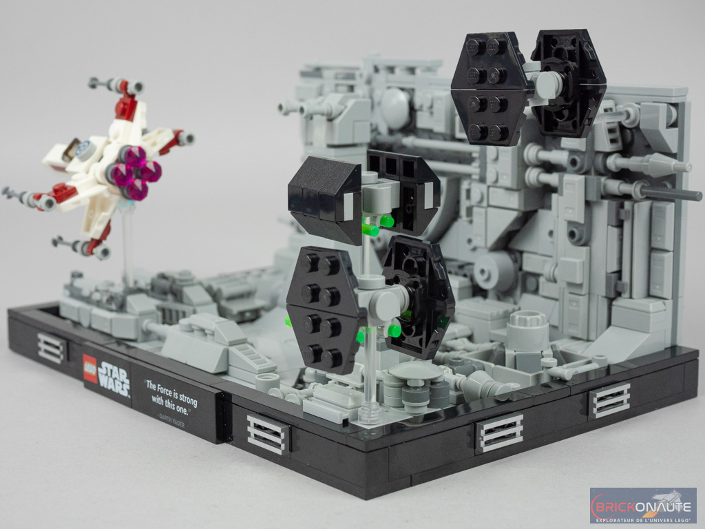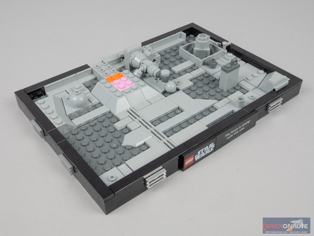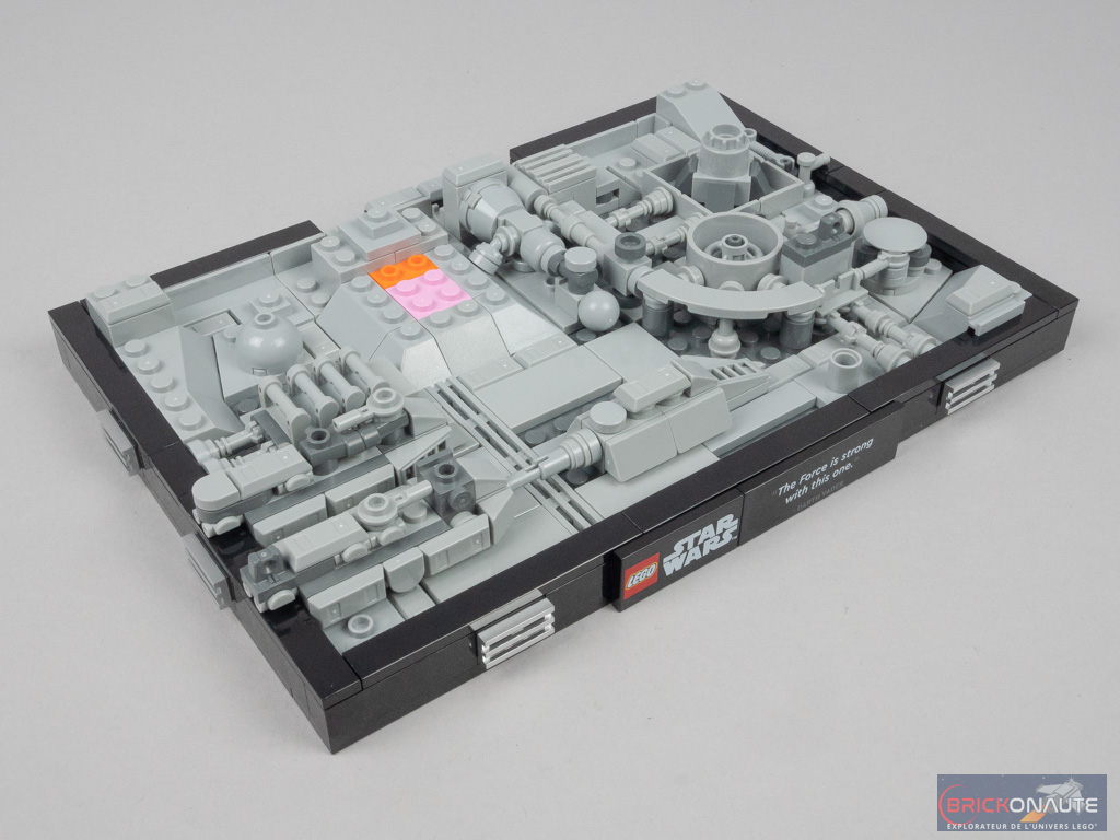 Le niveau de détail obtenu est tout à fait satisfaisant. À commencer par le décor de la tranchée de l’Étoile de la Mort, vue dans l’Épisode IV Un Nouvel Espoir. Le rendu est très « organique », les détails en gris clair se détachant du fond plus foncé – quelques uns dépassant légèrement du support. Même s’il ne s’agit pas tout à fait d’une tranchée mais le raccourci était inévitable pour conserver une « lecture » aisée de la scène en question.