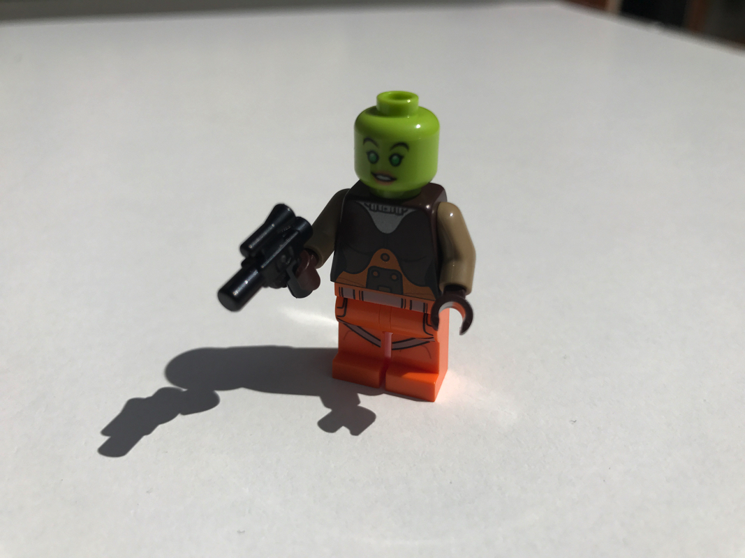 C’est sans nul doute le point fort de toute cette gamme de Microfighters : la minifig livrée ici se révèle comme d’habitude d’une grande qualité. Elle représente ici la pilote du vaisseau, Hera Syndulla. Double visage, souriant ou non, casque avec lunettes et « tentacules », et petit pistolet blaster identique à celui trouvé dans ne nombreux sets de la gamme. La tampographie est soignée, et les couleurs sont agréables à l’oeil, entre le vert du visage, le marron de la veste et l’orange du pantalon.