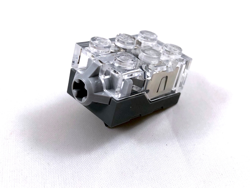 - la fameuse « light brick » qui permet d’illuminer le torse (à noter que la pile est incluse, et est également remplaçable si besoin grâce aux instructions fournies dans le manuel de construction)