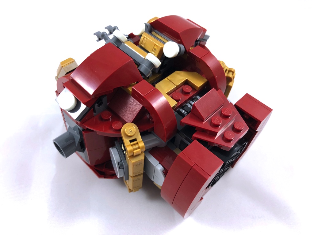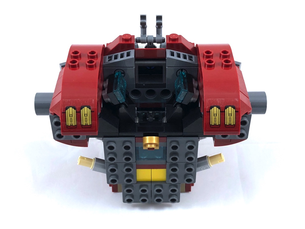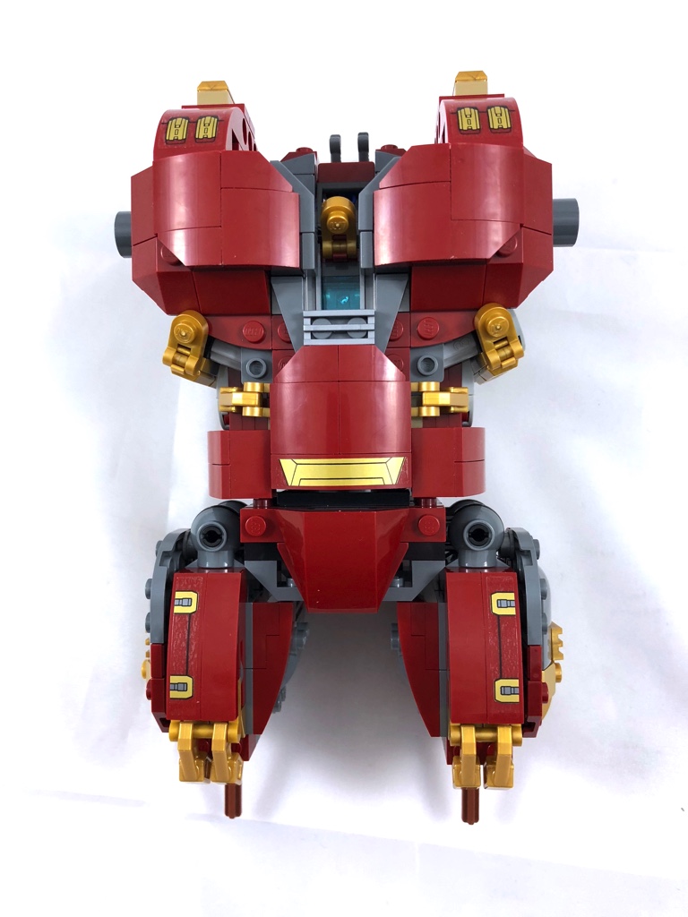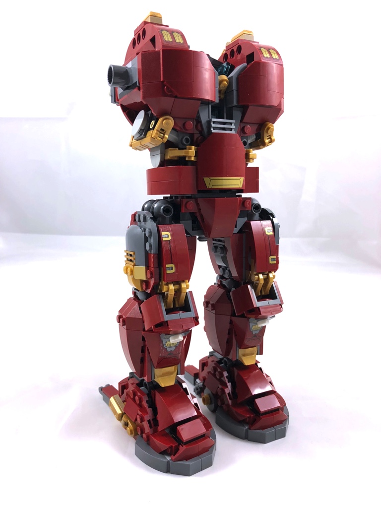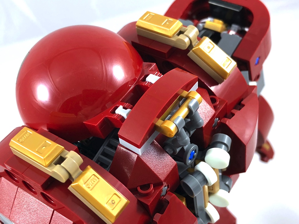 L’utilisation très intelligente par les designers d’une grande variété de pièces permettent littéralement de donner « vie » à notre Hulkbuster. L’utilisation des diverses pièces permettent l’obtention des formes caractéristiques de l’engin, reconnaissable au premier coup d’oeil. Le mélange des couleurs est très bien dosé, et les contrastes obtenus entre ces dernières sont réellement intéressants et bien trouvés.