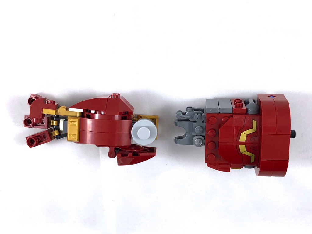 L’articulation sur un ball joint au niveau des pieds est également discutable, le modèle ayant tendance à pencher sous son propre poids. Heureusement, LEGO a prévu des butées, ce qui évitera au modèle de s’affaler lamentablement sur votre étagère. Je trouve (mais ce n’est que mon avis) également regrettable que Tony Stark ne soit pas présent dans son armure.