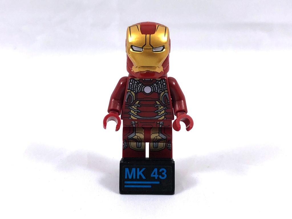 Une seule minifig au programme ici, qui n’en est pas tout à fait une, je m’explique : vous ne trouverez pas Tony Stark dans l’armure de cet Iron Man MK43, puisque seule une pièce transparente ayant la forme d’une tête de minifig prend place sous le casque. Personnellement, je trouve cela dommage, d’autant plus qu’il est possible de placer cette minifig dans le poste de pilotage du Hulkbuster.