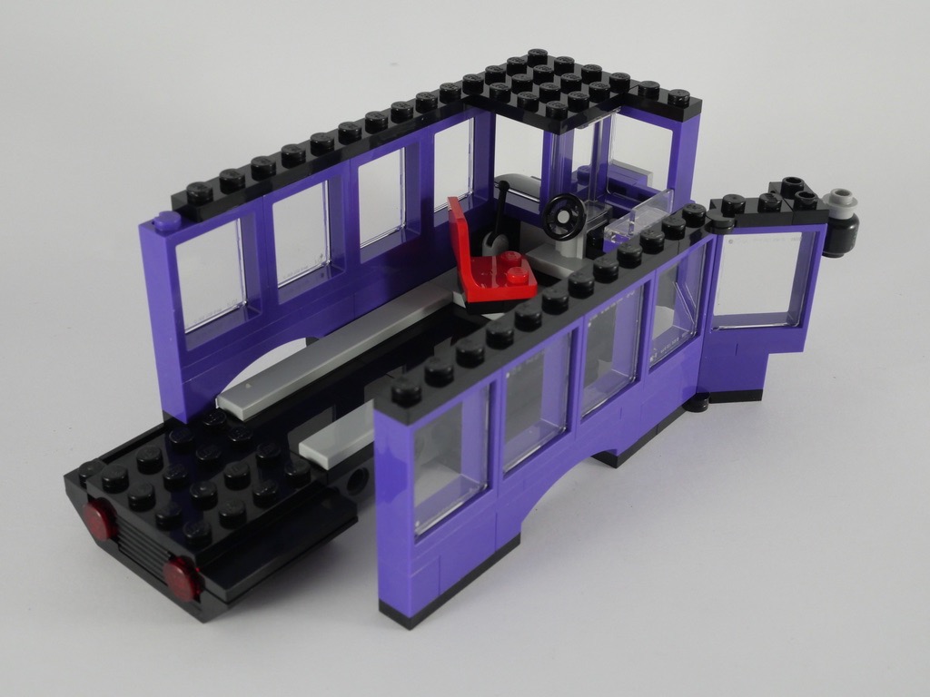 Quand on parle d’un véhicule LEGO et de jouabilité, celui-ci possède nécessairement une qualité première : il roule. Le designer a ajouté quelques « fonctions » supplémentaires : un lit au niveau bas, posé sur des « rails », de sorte à pouvoir bouger au gré des freinages et accélérations du chauffeur, ou un lustre articulé sur un pin Technic. On notera également la possibilité d’ouvrir le côté du bus, et de retirer le 3ème niveau, ce qui rend (un peu) plus facile l’accès à l’intérieur. Le bus étant assez étroit, ça reste assez compliqué tout de même. Le lit « mouvant » était également une bonne idée, même si Harry ne s’y installe pas lors de son trajet à bord du bus. Dommage que la « course » qui lui est allouée soit plutôt courte, et que la position prise par Harry soit… étrange. Enfin, il est impossible de placer le contrôleur debout, ailleurs que sur la dernière marche : il est trop grand.