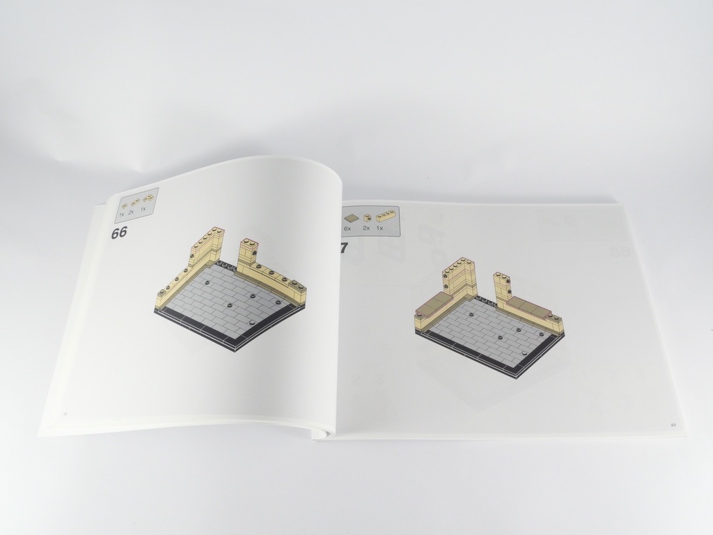 La notice d’instructions fait 158 pages pour 207 étapes de construction. Elle est offerte dans une finition premium dans la veine de la gamme LEGO Architecture, si ce n’est que tout est présenté sur un fond blanc. Au début, nous trouvons quelques mots du designer, et à la fin un guide des couleurs LEGO.