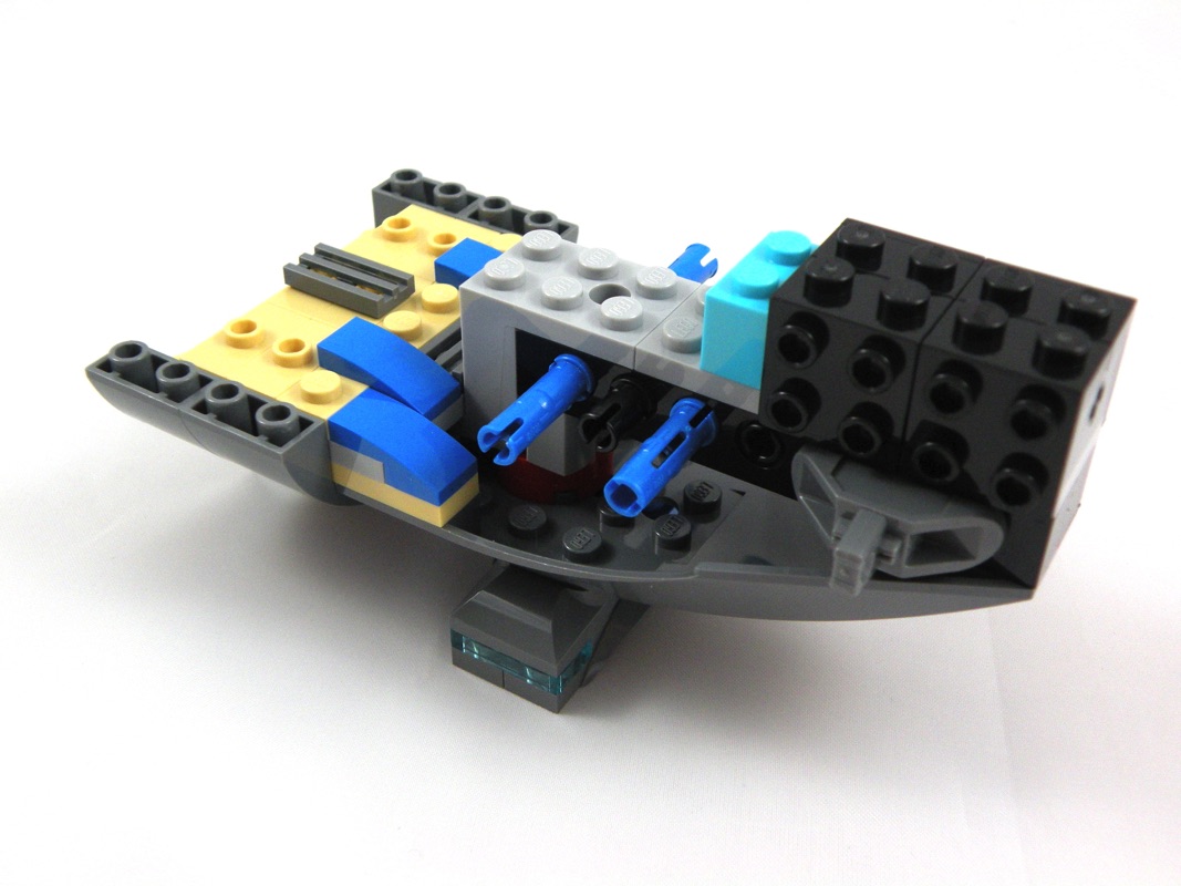 On termine enfin en ajoutant deux ailettes à l’arrière, et la grande verrière tampographiée (ouf !) exclusive à ce set.