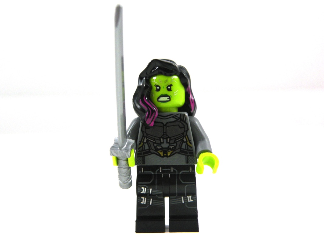 Une minifig plutôt réussie, mais à mon goût un petit cran au-dessous des autres minifigs du set. Les jambes sont ici sans aucun décor, le torse est bien détaillé avec ses bras (et ses mains) de deux couleurs différentes. La tête est bien réussie, aussi bien sur l’avant que sur l’arrière. La sœur (et ennemie jurée) de Gamora est ici menottée.