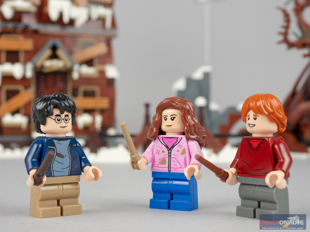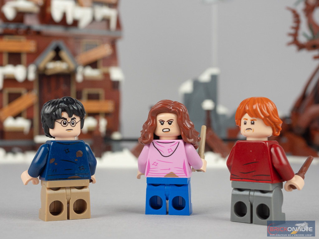 Parmi nos 3 héros, deux (Harry Potter et Hermione Granger) ont été vus dans cette même tenue salie un peu plus tôt cette année avec le set 76398 Hogwarts Hospital Wing. Ron est dans une tenue un peu plus ancienne, vue dans deux références en 2019 et 2020. Logique puisque les scènes sont censées se dérouler dans le 3ème opus de la saga, précisément avant que Ron ne soit blessé et donc coincé à l’infirmerie.