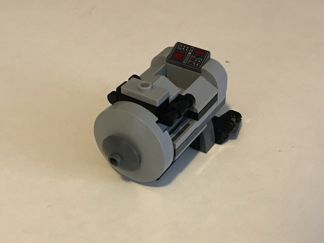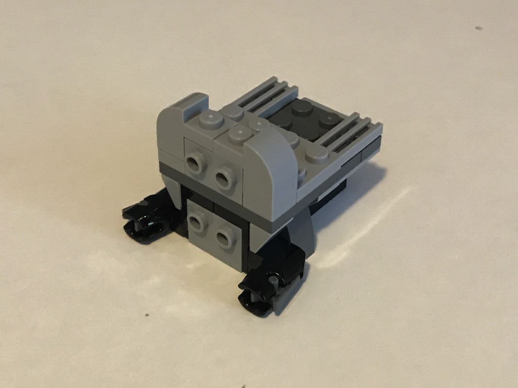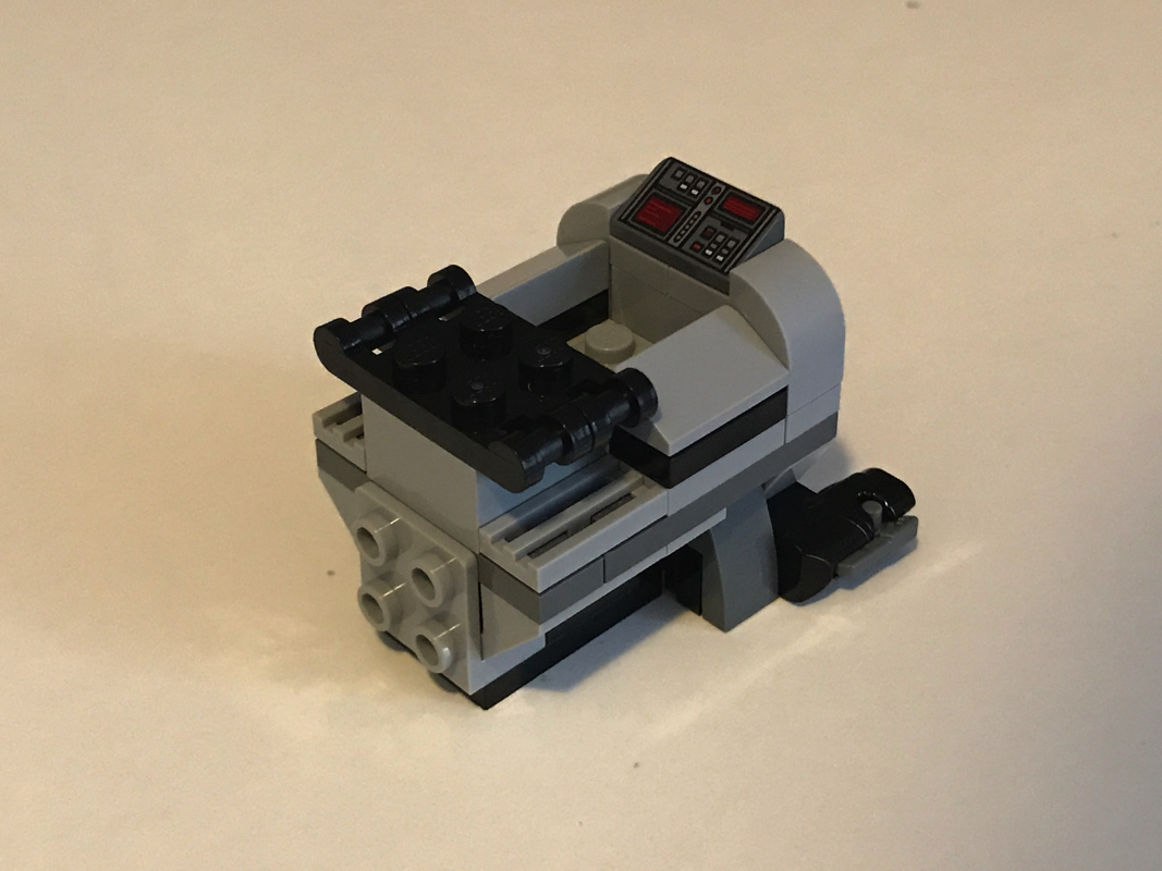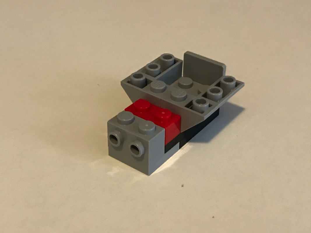 S’ensuit l’assemblage du « coeur » du vaisseau, avec ses deux fusils à tenons, sa forme cylindrique typique et une petite slope tampographiée en guise de tableau de bord, élément notable qui n’apparaît que dans ce seul set de cette vague Microfighters 2017. Le pilote prend place comme dans les autres vaisseaux dans un espace de 2×2 tenons aménagé sur le dessus.