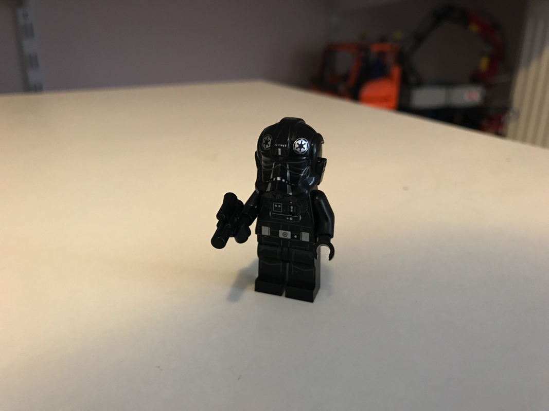 La minifig représentant le pilote est très soignée comme d’habitude avec ces mini-modèles. Elle est mono-face (casque oblige), et est fournie avec un casque très bien détaillé. Le torse, la taille et les jambes sont tampographiées avec la combinaison du pilote, et il est livré comme tous les modèles de cette gamme avec un pistolet blaster.