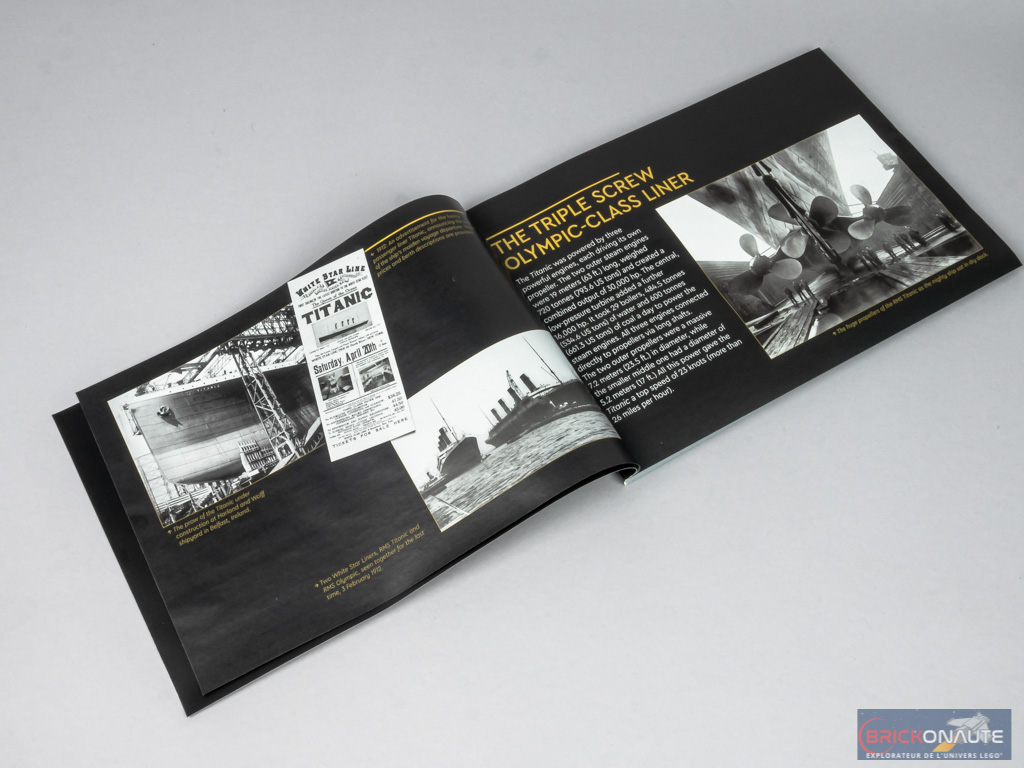 La notice commence, comme on pouvait s’y attendre, par quelques éléments d’histoire au sujet du célèbre bateau. Et quelques anecdotes / informations sont également disséminées au fil des étapes de construction. Étrangement, le designer LEGO n’est mentionné nulle part – peut-être que cela viendra plus tard !