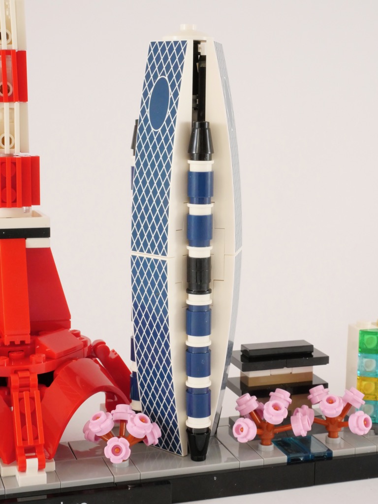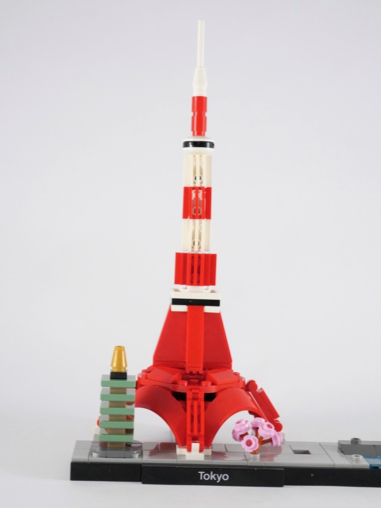 Se pose toujours avec ces skylines la question du choix des bâtiments. Seul petit regret, pour ma part, j’aurais aimé trouver un torii (鳥居), portail traditionnel japonais situé à l’entrée des sanctuaires shintoïstes. Ceux-ci sont omniprésents au Japon, et à Tokyo dans l’immense sanctuaire Meiji-jingū (明治神宮). Le Sensō-ji (金龍山浅草寺), très grand temple bouddhiste aurait également eu toute sa place. Leur absence est peut-être due à la volonté de LEGO d’écarter les bâtiments religieux de ses sets, mais la spiritualité étant une composante essentielle de la vie au Japon, leur présence aurait pu se justifier.